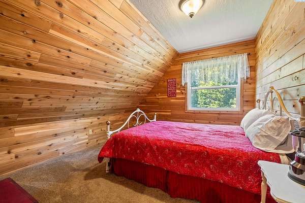 MLS 284069 - INCREDIBLE off-grid turn-key mountain retreat on 41 acres in the Blue Mountains. Escape to your own private paradise in this gorgeous cabin nestled deep in the serene Blue Mountains. Set on 41 expansive acres, this rugged yet VERY comfortable retreat offers self-sufficient living with modern conveniences in a breathtaking and peaceful setting with abundant wildlife. Cabin's interior boasts spacious open great room, sitting/game area upstairs, 3 official bedrooms but 5 sleeping rooms, 3/4 bathroom upstairs, and 3/4 bathroom downstairs. The cabin features a fire-resistant concrete base with durable tin roofing and low-maintenance Trex-covered decking -- perfect for taking in the panoramic views. Inside, stay cozy year-round with a wood-burning stove and propane heating, complemented by lots of vinyl windows that enhance energy efficiency and wonderful natural lighting. Live independently with a 1000-gallon underground water storage tank, gravity-fed septic system and a 250-gallon propane tank powering a brand new low decimal, remote start propane generator, inline gas water heater and gas appliances including a refrigerator and stove/range. A gas BBQ is fully plumbed, ideal for outdoor cooking and entertaining under the stars. Although off-grid, the home is fully wired for electricity with an electrical box already in place and grid power located nearby, offering flexibility for future connection, if desired. A large storage container unit on-site provides ample space for tools, toys, gear or additional supplies. 125 gallon water refill water tank included with sale - so easy to refill underground tank. Whether you're seeking a recreational escape, hunting base or a move toward full sustainable living, this property delivers unmatched privacy, resourcefulness and natural beauty -- all just a short drive from civilization.