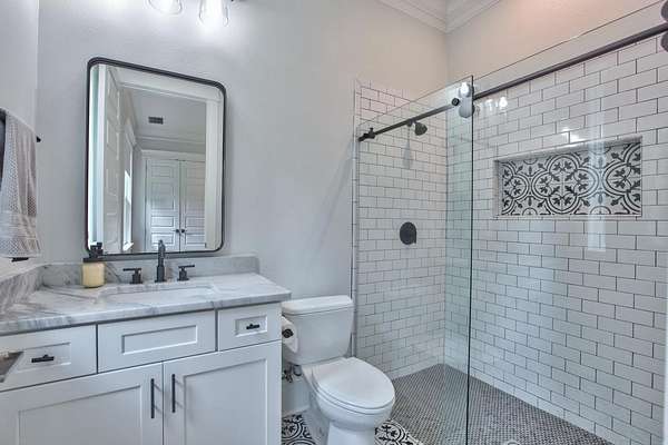 A like new home located in Mission San Miguel - a beautiful gated community that includes community center, swimming pool, tennis, volleyball and basketball courts, walking trails and green space to enjoy. This 1-story "Orchard" model offers 5,950sf of single-story living featuring 7 bedrooms, mother in law separate home, study/office, formal dining room, living room, game room, bonus room, 2 outdoor screened in porches. The kitchen has two large double islands with double sink, a large walk-in pantry. Glass doors that open up into the large backyard and covered patio space. The primary bathroom features a separate tub and shower, double sinks, and a wrap-around walk-in closet. All bedrooms have walk-in closets. There is a 1178 sf mother in law house. The four-car finished garage is equipped for electric vehicle charging. This stunning residence offers all the expected amenities of modern luxury living.