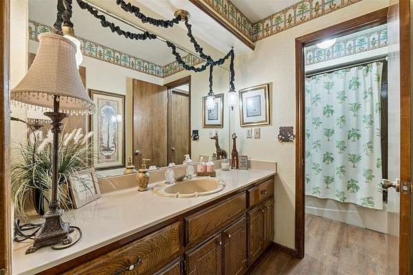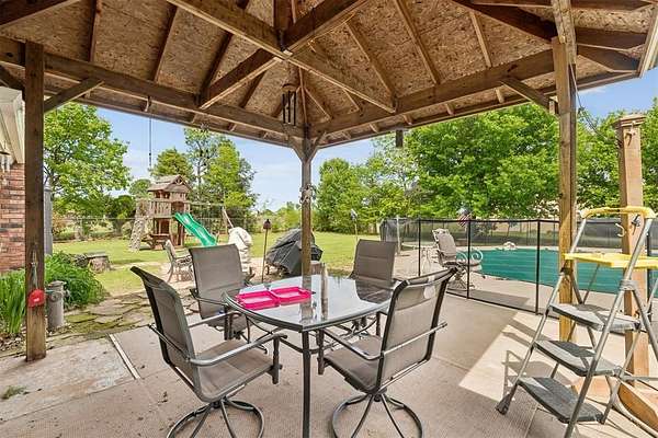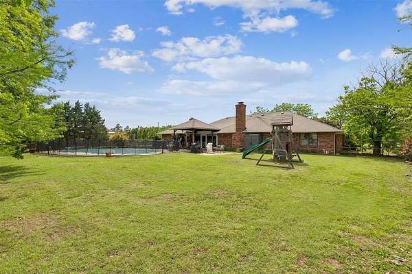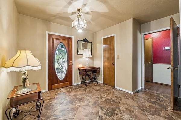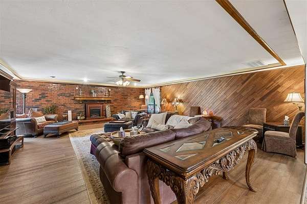 Welcome to your private Oklahoma estate on 5 acres at 9400 S Sooner Rd-where luxury, space, and versatility come together seamlessly. This beautifully maintained 3,353 sq ft home offers 3 bedrooms, 3 full bathrooms, 2 spacious living areas, and a 3-car garage, all designed with timeless style and comfort in mind. Step inside to a grand family room with stunning presence, complemented by two fireplaces-including one in the serene primary suite. The gourmet kitchen is a true centerpiece, featuring granite countertops, abundant cabinetry, built-in ice maker, and a large bar perfect for entertaining. A formal dining room and Florida room provide additional space for gatherings and relaxation. The thoughtfully designed mother-in-law floor plan offers privacy, while the generous-sized bedrooms, extensive storage, and convenient laundry access off the primary suite enhance everyday living. Durable wood and tile flooring run throughout the home for both beauty and function. Step outside to your own backyard retreat, complete with an inground diving pool, all surrounded by peaceful, private acreage and a picturesque tree-lined driveway. What truly sets this property apart is the impressive 100x100 commercial shop-fully equipped with heat and air, a kitchen, bathroom, and additional living quarters-offering endless possibilities for business, hobbies, or multigenerational living. The garage also features a built-in storm shelter for added safety and peace of mind. Located just minutes from I-40, I-240, Tinker Air Force Base, shopping, and dining, this property offers the perfect balance of privacy and convenience. This is more than a home-it's a forever estate with room to grow, work, and live the lifestyle you've been dreaming of.