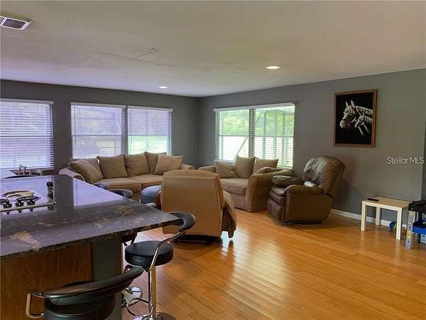 The home offers 3 bedrooms, 2 bathrooms, and an open floor plan with bamboo flooring throughout. The kitchen and living area flow together with plenty of natural light and granite counters. A screened sitting and dining area looks directly out over your pastures... it's the kind of spot you'll use every single day.
