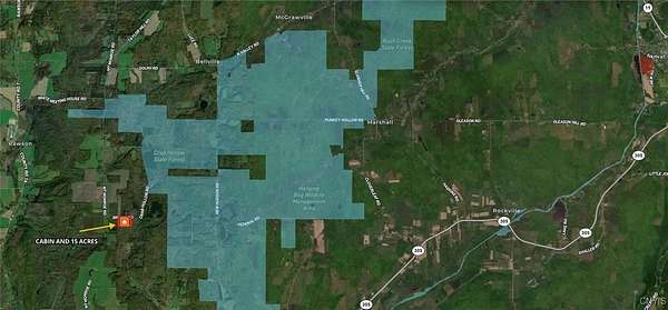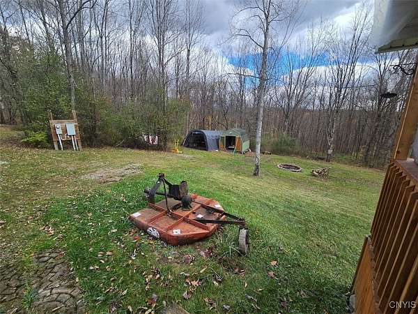 This secluded cabin on 15 acres is located in New Hudson NY, Allegany County. Enjoy the peace and quiet of this tranquil property tucked away on a seasonal road. The cozy cabin offers all the comforts of home including hot water, heat, and electricity. The property has functioning well and septic that have been installed to code. Set on 15 mostly wooded acres with a gentle slope, the property also features a spacious lawn and fire pit perfect for relaxing evenings outdoors. The view from the cabin's deck overlooks the lawn and surrounding woods. You could enclose the deck and enjoy the view year-round. For added convenience, a shed and a pop-up garage provide ample storage for tools, tractors, and other equipment. This property is located across the road from over 4,000 acres of state land maximizing opportunity for hunting either on your own 15 acres or on the state land. Whether you're searching for a peaceful weekend getaway or a private full-time residence with plenty of space and acreage, this property offers the ideal blend of comfort, seclusion, and natural beauty. The property is located 10 minutes from Cuba NY, 35 minutes from Olean NY, and an hour and 20 minutes from Buffalo NY.