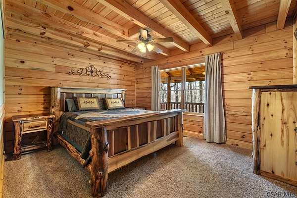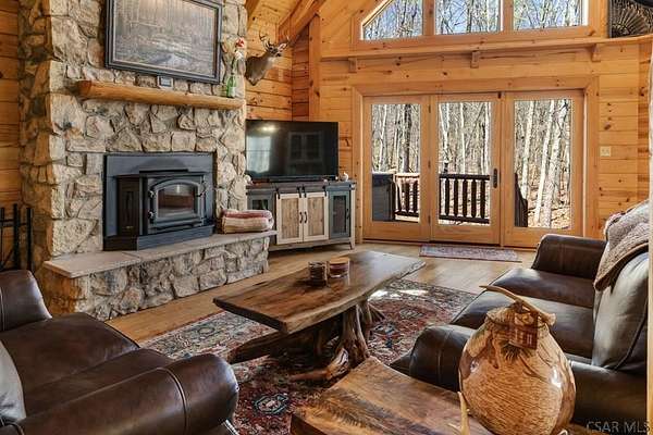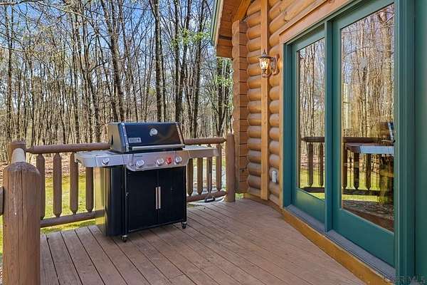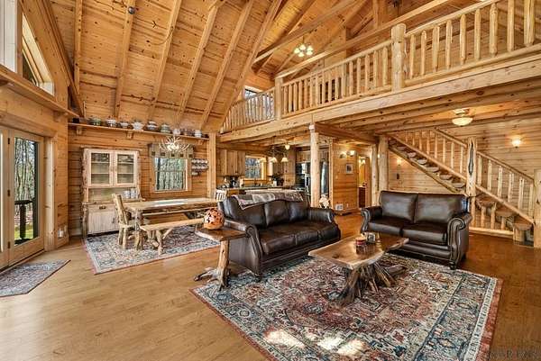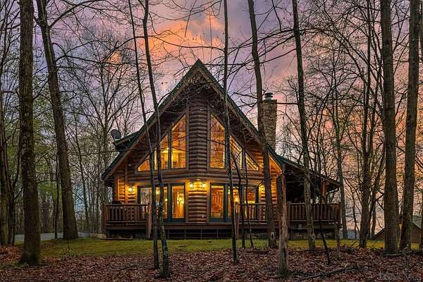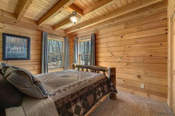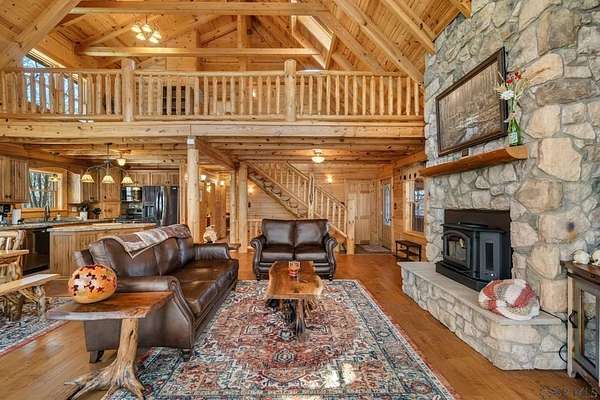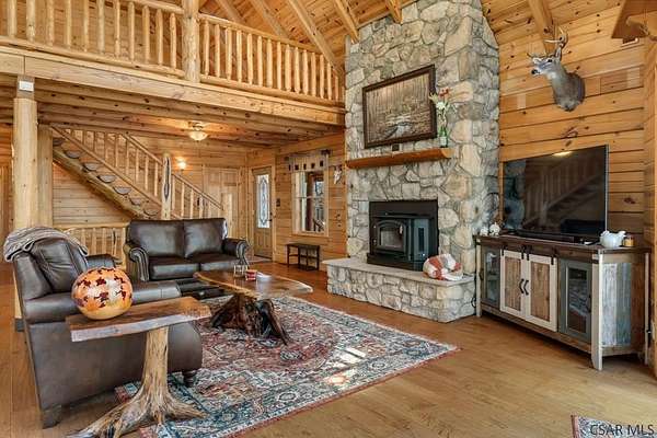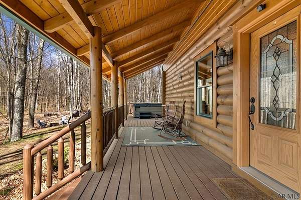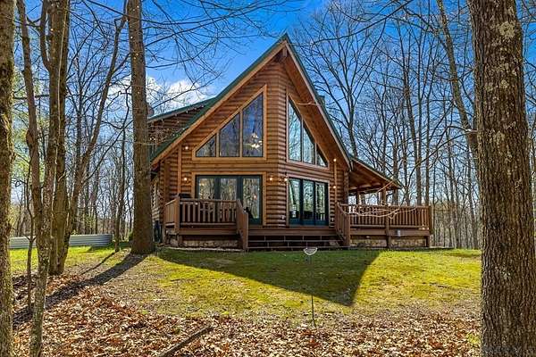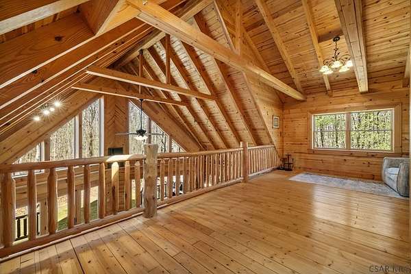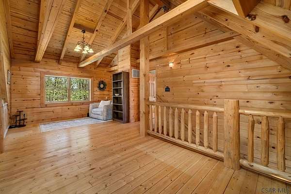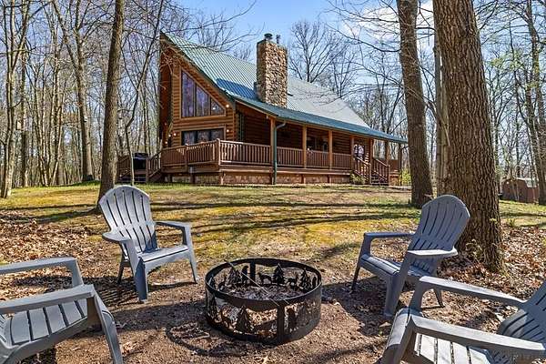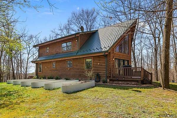 Escape to your own private slice of the outdoors with this stunning 2009 custom-built 1.5 story log cabin, perfectly situated on over 27 wooded acres. Designed for those who value privacy, space, and a true connection to nature, this property is ideal as a forever home, weekend retreat, or a fully equipped hunting retreat. The land itself is a standout feature, complete with a peaceful creek running through the property, attracting abundant wildlife and creating a serene, natural setting. For the avid outdoorsman, this property is ready to go with a 100-yard shooting range and 8 included treestands, allowing you to step right into hunting season with everything already in place. Inside, the home offers 1,931 finished square feet filled with warmth and character, highlighted by the craftsmanship of a true log cabin. The living room serves as the heart of the home, featuring a beautiful stone, wood burning fireplace that creates a cozy and inviting atmosphere, perfect for relaxing after a day outdoors or gathering with family and friends. The layout is both functional and unique. The first floor is coming fully furnished with custom-built Amish furniture. The second-floor master suite offers a private retreat, complete with its own full bathroom and a spacious walk-in closet. Overlooking the main living area is a loft space, adding to the open feel of the home and providing a great spot for a home office, reading area, or additional sleeping space. Step outside onto the expansive wrap-around porch, where you can enjoy peaceful mornings, take in the surrounding woods, and experience the changing seasons in complete privacy. Whether you are entertaining guests or simply enjoying the quiet, this space is a true extension of the home. The property continues to deliver with over 1,200 additional square feet in the basement, already plumbed for radiant heat and an additional bathroom, giving you a head start on finishing even more living space tailored to your needs. Storage and versatility are unmatched with the 4-car heated detached garage featuring a finished loft, ideal for vehicles, equipment, ATVs, or a workshop. For those interested in a more self-sufficient lifestyle, the property also includes six established garden beds with an electric fence, ready for your next growing season. With a mix of wooded acreage, usable land, and natural water features, the opportunities here are endless. This property offers a rare combination of comfort, privacy, and recreation. Whether you are hunting, exploring, or simply unwinding, this is a place where you can truly disconnect and make lasting memories for years to come.