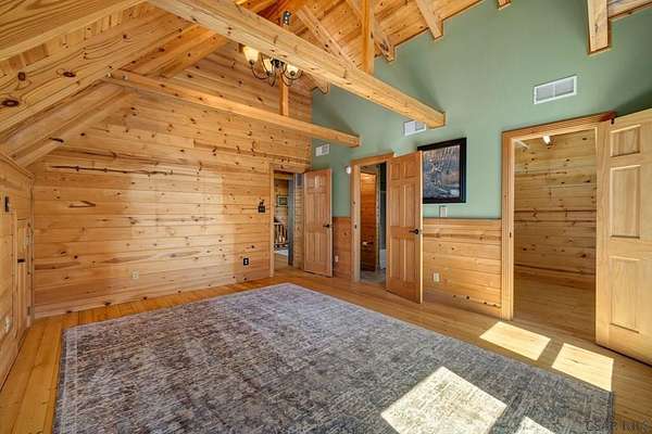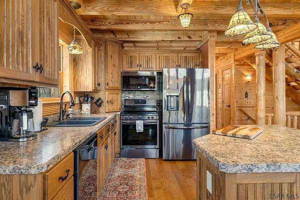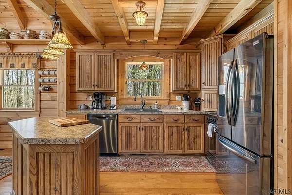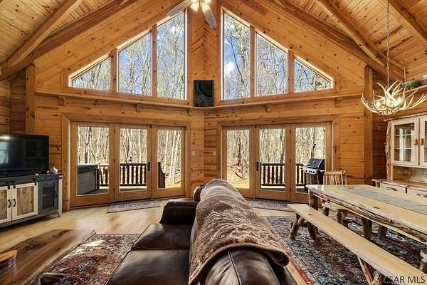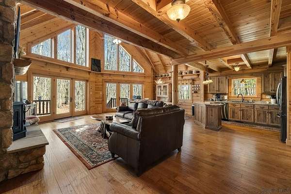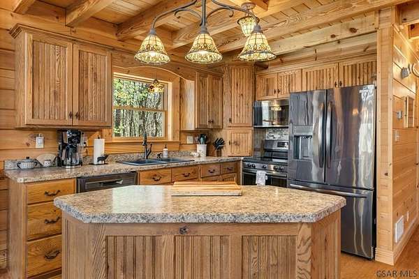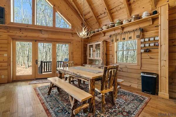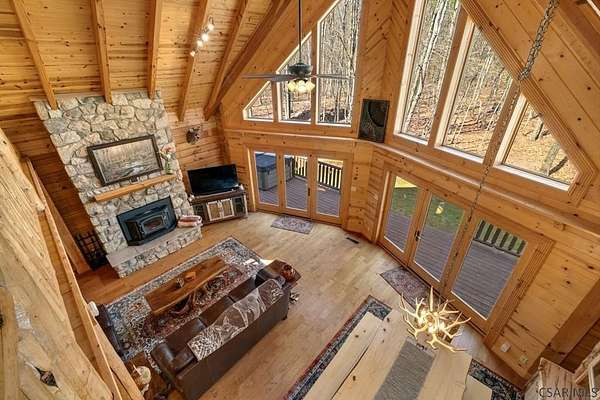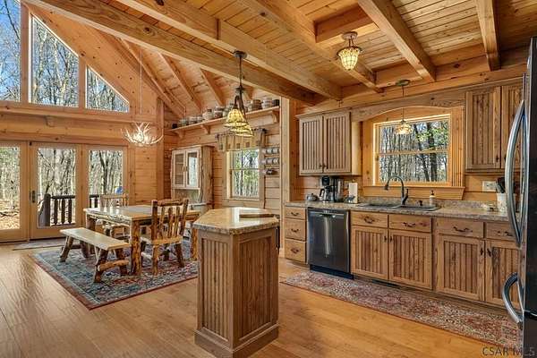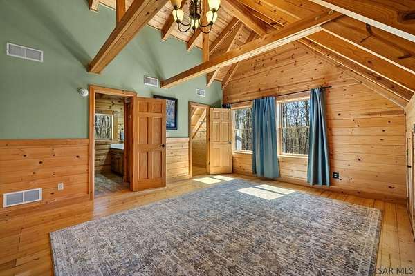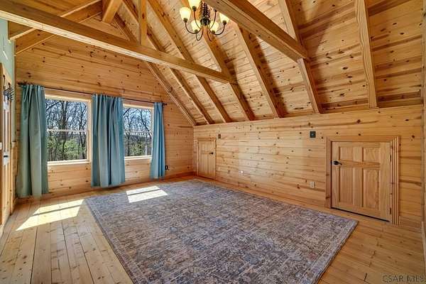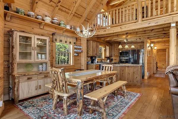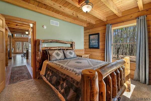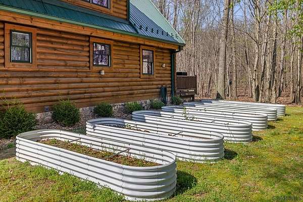 Escape to your own private slice of the outdoors with this stunning 2009 custom-built 1.5 story log cabin, perfectly situated on over 27 wooded acres. Designed for those who value privacy, space, and a true connection to nature, this property is ideal as a forever home, weekend retreat, or a fully equipped hunting retreat. The land itself is a standout feature, complete with a peaceful creek running through the property, attracting abundant wildlife and creating a serene, natural setting. For the avid outdoorsman, this property is ready to go with a 100-yard shooting range and 8 included treestands, allowing you to step right into hunting season with everything already in place. Inside, the home offers 1,931 finished square feet filled with warmth and character, highlighted by the craftsmanship of a true log cabin. The living room serves as the heart of the home, featuring a beautiful stone, wood burning fireplace that creates a cozy and inviting atmosphere, perfect for relaxing after a day outdoors or gathering with family and friends. The layout is both functional and unique. The first floor is coming fully furnished with custom-built Amish furniture. The second-floor master suite offers a private retreat, complete with its own full bathroom and a spacious walk-in closet. Overlooking the main living area is a loft space, adding to the open feel of the home and providing a great spot for a home office, reading area, or additional sleeping space. Step outside onto the expansive wrap-around porch, where you can enjoy peaceful mornings, take in the surrounding woods, and experience the changing seasons in complete privacy. Whether you are entertaining guests or simply enjoying the quiet, this space is a true extension of the home. The property continues to deliver with over 1,200 additional square feet in the basement, already plumbed for radiant heat and an additional bathroom, giving you a head start on finishing even more living space tailored to your needs. Storage and versatility are unmatched with the 4-car heated detached garage featuring a finished loft, ideal for vehicles, equipment, ATVs, or a workshop. For those interested in a more self-sufficient lifestyle, the property also includes six established garden beds with an electric fence, ready for your next growing season. With a mix of wooded acreage, usable land, and natural water features, the opportunities here are endless. This property offers a rare combination of comfort, privacy, and recreation. Whether you are hunting, exploring, or simply unwinding, this is a place where you can truly disconnect and make lasting memories for years to come.