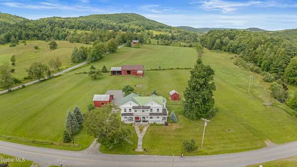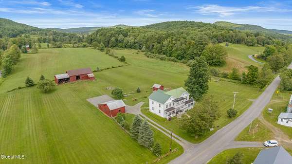 Welcome to 941 County Highway 40 in Charlotteville, NY, an expansive 5-bedroom, 2.5-bath farmhouse set on approximately 15 acres of beautiful, level land. Built in 1840 and brimming with character, this 3,593-square-foot home boasts original wide-plank floors, etched glass windows, natural woodwork, and a formal dining room. The spacious kitchen features newer appliances, a center island, and built-in cabinetry with ample storage space. Enjoy a first-floor laundry, a home office, and multiple living spaces, all ideal for everyday comfort. Outside, you'll find walking trails, vegetable & ornamental gardens, and a peaceful stream. A large two-story barn is perfect for livestock or equipment, and additional outbuildings provide workshop, storage, and work space.