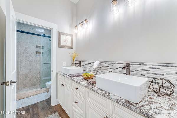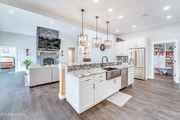 MOTIVATED SELLER: Absolutely stunning one-of-a-kind LAKE FRONT custom home in the heart of West Knoxville! This unrestricted extraordinary property is perched upon over 2 acres of serene natural beauty with an unobstructed view of Ft. Loudon Lake. The land across the lake is registered as preservation area, so you are able to enjoy the views and seclusion worry free knowing there will be no future construction. Instantly you will be entranced by the exquisite curb appeal of the all brick exterior, spacious driveway, covered rocking porch, and double wood front door. Upon entering, it is evident that no detail has been overlooked including luxury fixtures/hardware/trim and an ideal floorplan with a room for every need! The main floor boasts an open living room with 12' ceiling; eat-in chef's kitchen with massive pantry, granite counters, tiled backsplash, stainless steel appliances, and island with farmhouse sink and seating; multiple MAIN LEVEL bedrooms including a primary bedroom with custom dressing closet and ensuite bath with tiled walk in shower, dual vanities, and soaking tub; and multiple flex spaces for use as rec rooms, playrooms, home offices, and more! Upstairs you will find an additional bedroom with private bath or use as a large bonus (a perfect guest suite!). The basement could be its own separate living quarters with spacious rec spaces, kitchenette, bedroom, full bath, home gym, 2 safe rooms, and a hidden office! The outdoor amenities will become your own private oasis with an expansive main level covered deck and a basement level covered stamped concrete Game Day patio overlooking the outdoor kitchen, heated inground pool, and hot tub! Move in worry free knowing that even the details you cannot see have been meticulously designed for comfort and peace of mind including hermetically sealed walls (guaranteed to never leak), spray foam insulation from the roof all the way down to the main floor exterior walls, sound deadening battons in bedrooms, and upwards of 80% Smart technology upgraded including lights and exterior locks! Did we mention this amazing home is also LAKE FRONT! Enjoy year round lake access and natural serenity from your covered dock. Located in exclusive Westland Cove, this home is conveniently located near all West Knox amenities with easy access to Pellissippi Pkwy, I40, Kingston Pike, and Westland Dr. This magnificent property is a MUST SEE!