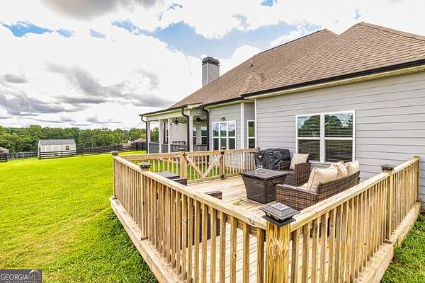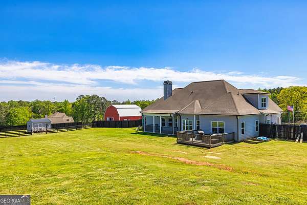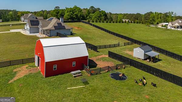 Charming Retreat on 5 Acres - Because Who Doesn't Want a Mini Farm 15 Minutes From Civilization? Tired of cookie-cutter neighborhoods with HOAs breathing down your neck? Great. Welcome to your 5-acre, fully fenced paradise where the neighbors are more likely to moo than file noise complaints. Just a breezy 15-minute drive to The City of Hope and Piedmont Hospital (because, you know, goats can be unpredictable), and a mere 30-45 minutes to the Atlanta Airport-perfect for those moments when you suddenly need to escape your "simple country life." This animal-lover's dream is ready for horses, goats, chickens, or whatever barnyard ensemble you've been curating on Pinterest. The barn's three animal-ready stalls are basically five-star accommodations for your four-legged friends. An electric gated entrance gives you that "I own a ranch" vibe and keeps the random nosy drivers out. The house itself is designed for maximum comfort and minimum utility bills-thanks, solar panels! The main-level primary suite is so spacious you might get lost in it, complete with a spa-style bath to help you recover from all that "peaceful" country living. Two additional bedrooms and a shared bath are right there too, for family or friends who claim they "love the country." Upstairs, a private suite with full bath awaits your guests, in-laws, or anyone else who needs their own little kingdom. Inside, the open family room with wood-burning fireplace is perfect for cozy nights, dramatic readings, or pretending you're in a Hallmark movie. The formal dining room and eat-in kitchen with breakfast bar scream "I host Thanksgiving now." The oversized mudroom and laundry area practically beg you to track in some dirt-don't worry, it can handle it. Step outside to two outdoor entertaining areas, where you can sip sweet tea and gaze dramatically across your land like you're in a southern epic. And because there's no HOA, you can actually do what you want with your property-raise animals, build a treehouse, host epic bonfires, or just revel in the bliss of no one telling you what color your barn doors can be. Move-in ready, energy-efficient, and endlessly versatile. It's rural living-but with Wi-Fi and shopping not too far away.