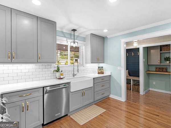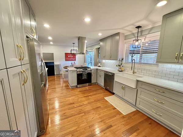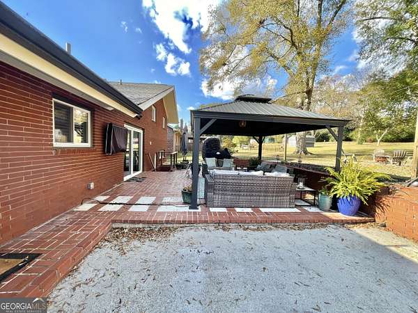 Magazine-worthy! This beautifully updated all-brick home sits on a spacious 1.58 acre lot on the Southside. Featuring a fabulous 4BR/3BA floor plan, 2744 ASF, the home includes a finished basement perfect for a teen suite, guest quarters, or extended living. Perfect for entertaining, it offers a separate dining room that seats 12+ and generous room sizes throughout. The family room features a charming brick fireplace, and designer-selected colors elevate every space. The stunning kitchen boasts quartz countertops, stainless steel appliances, under-cabinet lighting, and a large farm-style sink. Outdoor living shines with a large pergola, fire-pit area, and storage building with power-ideal for gatherings and relaxation. Prime location! Close to schools, the hospital, and Highway 16 for easy access to I-75. Just a quick golf-cart ride to downtown Griffin!