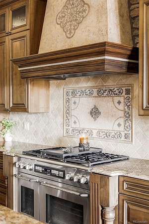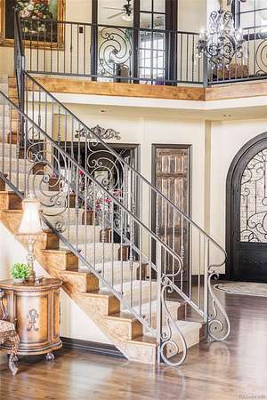 This meticulously maintained 5-bedroom, 7-bathroom residence showcases timeless mountain traditional architecture with elevated finishes. Custom iron arched double door entry. Venetian plaster barrel ceiling to welcome you into the living room. Chef's kitchen with an impressively large island, Brazilian granite countertops, custom hammered copper farm and prep sinks, 6-burner stovetop & double oven. Stone accent walls and curated dark wood finishes to really capsulate the warmth of the home. All while being protected by a 500 gallon whole home fire suppression system.