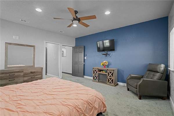 - Ceiling Fan(s), Kitchen Island, Painted Cabinets, Pantry, Stained Cabinets, Walk-In Closet(s)