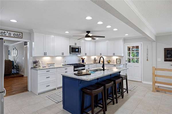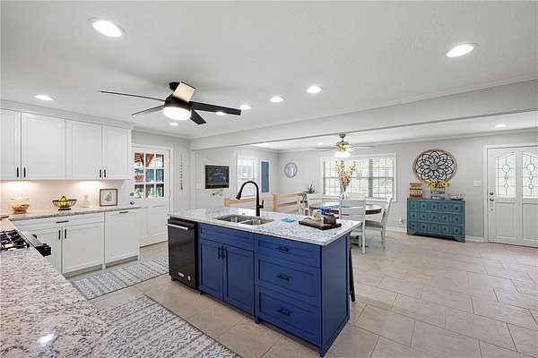 - Built In Features, Ceiling Fans, Eat In Kitchen, Granite Counters, Mud Room, Multiple Living Areas, Pantry, Split Bedrooms, Walk In Closets, Window Treatments