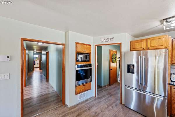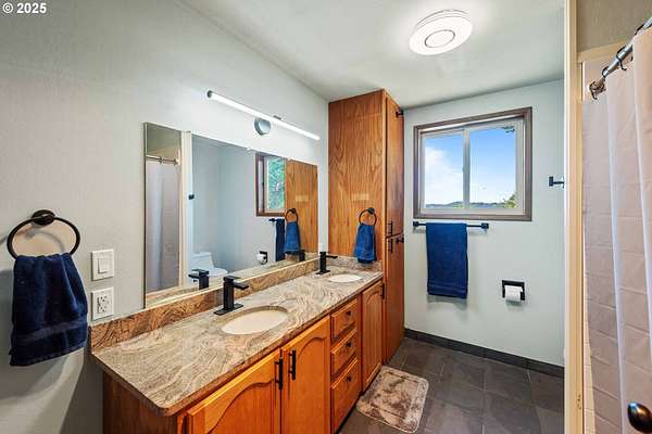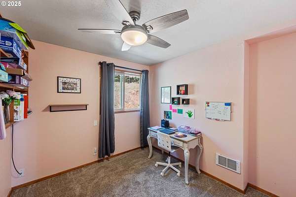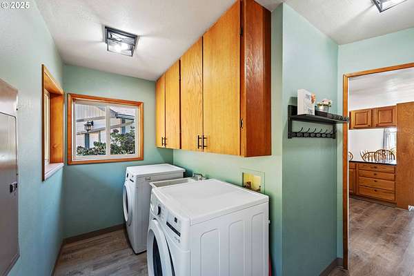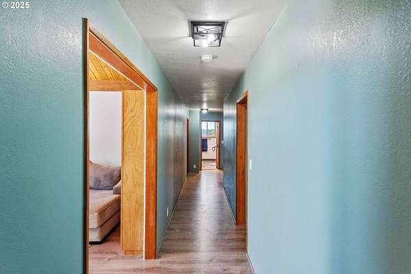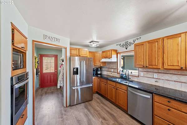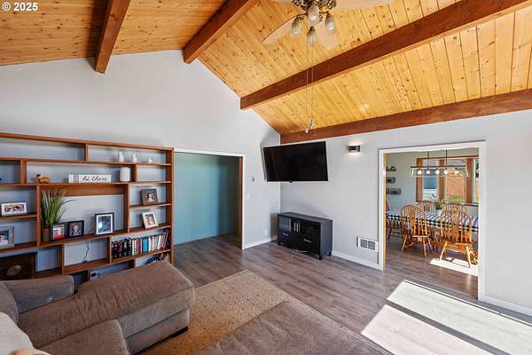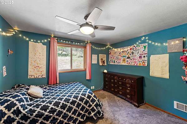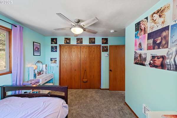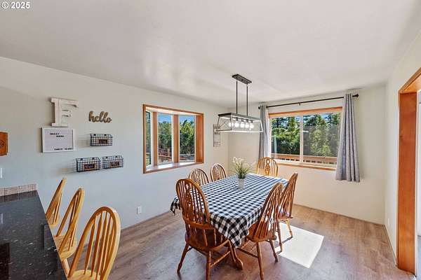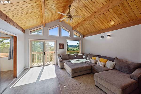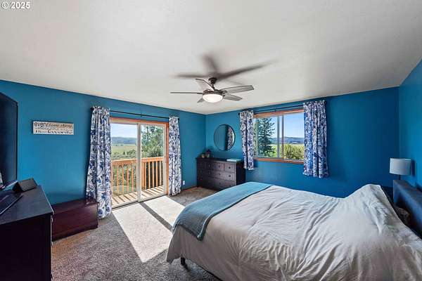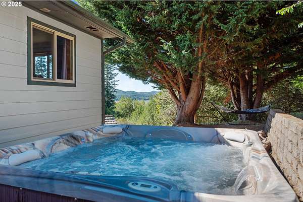 Beautiful Valley and Mountain VIEWS! This stunning 3,640 sq. ft. custom-built home sits on 2.08 acres and offers 5 bedrooms and 3.5 baths. The main level features four bedrooms and 2.5 baths, while the lower level includes a separate entrance, one bedroom, one bath, a bonus storage/office area and a huge family room, perfect for guest quarters or multi-generational living. A detached two-car garage provides plenty of parking and more storage space. Enjoy the privacy of this peaceful end-of-the-road location, just minutes from downtown Coquille. The property has mature trees and a fenced area for animals, electric fence past the back yard that nearly doubles the total fenced in space. Relax outdoors with the beautiful water feature, hot tub, and fire pit, or take in the amazing valley VIEWS from the spacious deck that spans the full length of the home! City water is a plus. Located just 1.5 miles from the Coquille River Walking trail, boat ramp, & great fishing. This home is also in a great school district and only about 16 miles from the world-famous Bandon Dunes Golf Resort and the beautiful Oregon Coast beaches.