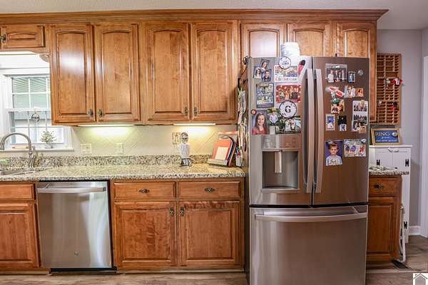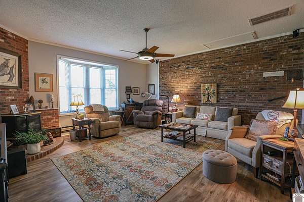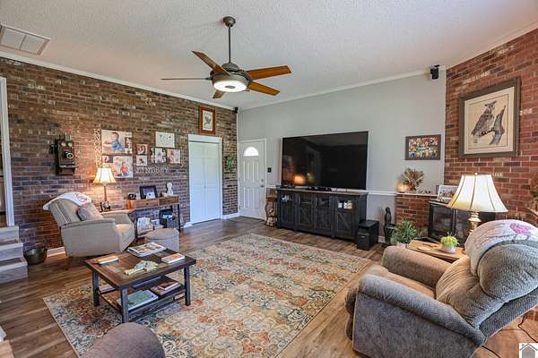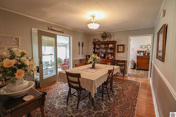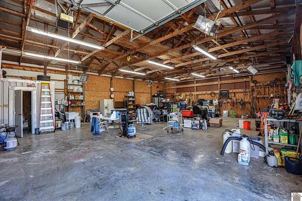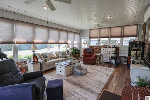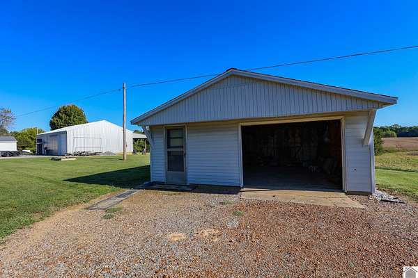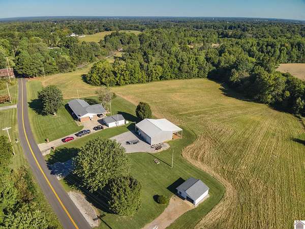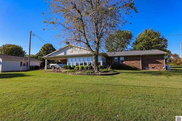 This well-maintained, one owner 3 bedroom, 2 bath home offers over 2,600 sqft of living space on nearly 18 acres, perfect for crops, a mini farm, hunting, or simply enjoying peaceful country living. The property includes three garages, including a 38x48 workshop with two overhead doors and a half bath. There's also a whole-home generator that will power the house and 2 detached garages, plus a 3 year old roof for peace of mind. Inside, you'll find multiple living areas, a formal dining room, and a modern kitchen with stainless appliances and abundant cabinetry. The family room features a cozy stove and exposed brick, while the bright sunroom is surrounded by windows for year-round views. The spacious primary suite offers a soaking tub, dual vanities, a large walk-in closet, and convenient utility room. With a covered front porch and room to make it your own, this property combines comfort, space, and versatility.