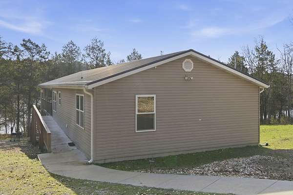 The ultimate lake getaway on Big Aunt's Creek of Table Rock Lake! This beautiful lakefront property offers a gentle, short walk to the waters' edge to enjoy the pebbly beach and sits on approximately 3 acres with plenty of room to grow.Fully furnished and stocked with all the lake home essentials, this retreat is ready for you to start enjoying lake life immediately. The home features an open living, dining, and kitchen layout perfect for gathering with family and friends, along with 3 bedrooms and 2 bathrooms. Low maintenance vinyl siding and metal roof, GE smudge proof black stainless appliances, The spacious master suite includes an ensuite bath with a relaxing jetted tub.Step outside to the expansive partially wrap-around deck, with a large covered lakeside area ideal for enjoying the peaceful lake views. Additional features include an Eco Nest thermostat and a large crawlspace providing great storage for kayaks, paddleboards, and fishing gear.Conveniently located just minutes from the public boat launch at Jackson Hollow Boat Launch, about 10 minutes to Branson West for shopping and dining, and only 20 minutes to Branson for world-class entertainment, attractions, and endless shopping.Your perfect lake retreat awaits!