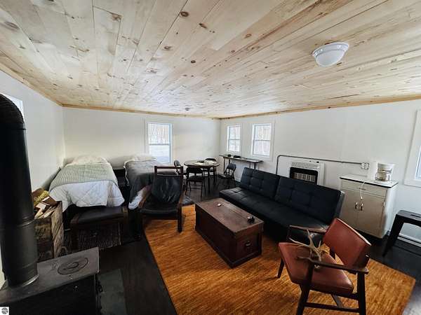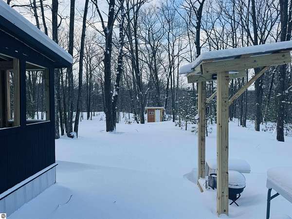 Escape to your own off-grid retreat in the heart of Northern Michigan's trail system! This beautifully updated cabin is a dream for outdoor enthusiasts--whether you love trail riding, snowmobiling, hunting, or simply relaxing among towering hardwoods. Nestled in the woods and surrounded by endless trails and state land, this property offers true Up North freedom and privacy. The cabin has undergone a complete overhaul featuring a new roof, windows, doors, and siding, plus a 10x10 deck with grilling area perfect for entertaining after a day on the trails. Inside, cozy up by the fireplace, creating the perfect ambiance after a long day outdoors. Additional improvements include an outhouse and an 8x8 shed that doubles as a hunting blind. Enjoy year-round use with a wall-mounted propane heater, a 3500 generator, solar lights, and select furnishings included at seller's discretion. The screened room is awaiting your finishing touches and will be the ideal spot to unwind on warm summer nights. Set on a slight elevation, the cabin offers peaceful hilltop views of the rolling forest. Truly a special place ready to enjoy from day one! Conveniently located between Cadillac and Manton and just a short drive to Long Lake for fishing and kayaking--this is your chance to own a slice of Northern Michigan paradise.