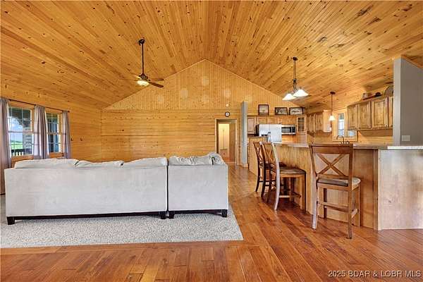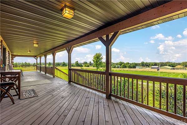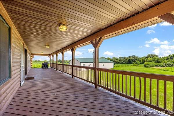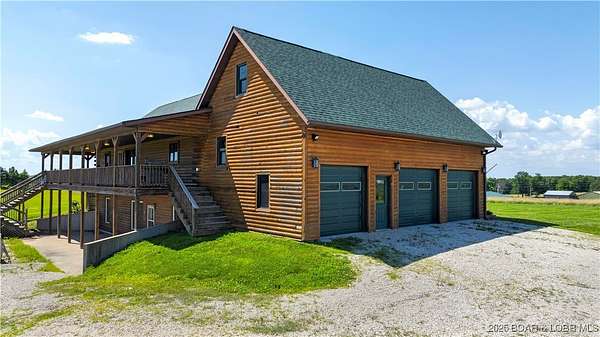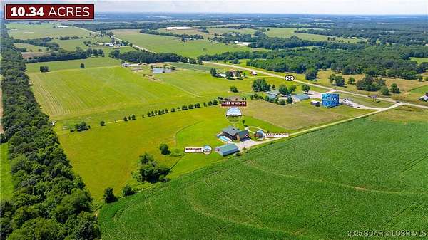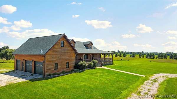 Discover a unique opportunity along Hwy 52 with this versatile 10.34-acre property featuring a beautifully crafted log home, detached shop, and no zoning restrictions. The 3,400 sq ft residence includes 4 bedrooms, 3.5 baths, multiple living areas, and a full walkout lower level with its own kitchen and laundry-ideal for multigenerational use, rental income, or office space. The oversized attached garage offers additional storage, while the heated and cooled shop provides living quarters and endless options for a workshop, retail storefront, or business headquarters. The wraparound porch and scenic acreage provide an inviting setting for clients, guests, or personal enjoyment. Conveniently located just minutes from Versailles with highway frontage and accessibility, this property offers the flexibility to serve as a private residence, commercial operation, or live-work setup. A rare chance to combine country living with commercial potential at the Lake of the Ozarks.