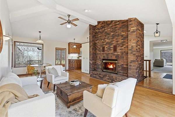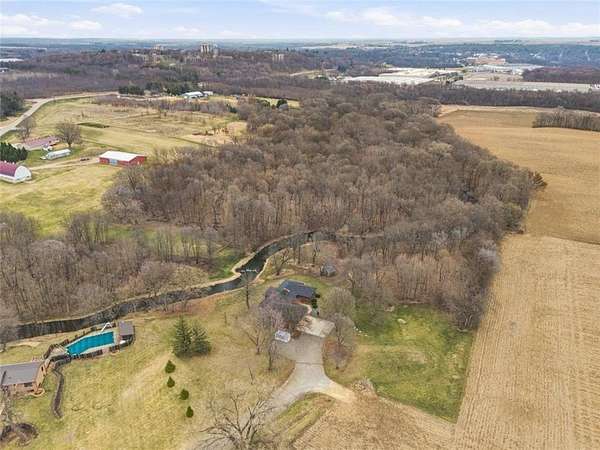 Welcome to this beautifully maintained brick home set on approximately 4.6 private acres at the end of a cul-de-sac, offering peaceful surroundings and scenic views overlooking a creek. This property combines space, comfort, and thoughtful updates in a truly inviting setting. Featuring 4 bedrooms and 3 bathrooms, this home offers approximately 2,190 square feet on the main level alone, providing generous living space throughout. Designed for convenient main-level living, the layout includes minimal stairs on the primary floor, along with a spacious two-car attached garage and abundant storage throughout the home. The inviting hearth room showcases a striking stone-surround gas fireplace, while the screened porch provides a perfect place to unwind and take in the natural landscape. The kitchen and living areas flow comfortably for everyday living and entertaining. The lower level offers additional flexible space, including a sauna ready for a new heater installation, which offers an excellent opportunity to create your own relaxation retreat. Recent improvements include the majority of windows replaced and a newer roof, adding value and peace of mind. Outdoors, the expansive yard offers plenty of room for a variety of uses, complemented by a large concrete patio and hot tub, ideal for enjoying quiet evenings or hosting gatherings. Properties offering this combination of acreage, space, and updates are not often available, schedule your private showing today to experience it for yourself.