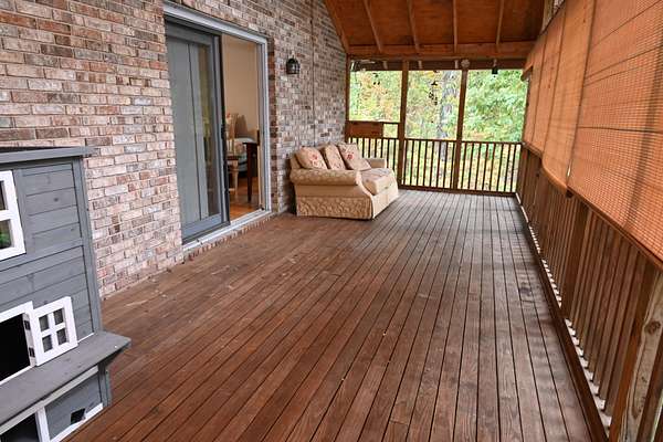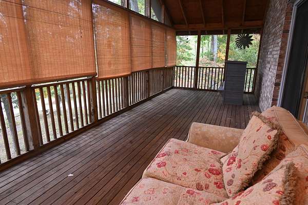 9426 Houston Lane, or The House on the Hill as it is lovingly referred to by family, welcomes you with a gated entry to the large, stone front porch, opening up into the warm, and open foyer. From the foyer you will see the dining room, family room, office, and stairs to the lower level. The family room is breathtaking, with floor to ceiling windows, a large stone fireplace, plenty of space for the whole family, and open to the kitchen and dining rooms. The kitchen serves as a true center to this home, connecting to the dining room, breakfast area, family room, library, and garage; this space is exactly where everyone will want to be. You will have a seat for everyone! Just off the breakfast area is a large, shaded wooded deck, perfectly set up for the grill of your dreams! The master bedroom..... once again, floor to ceiling windows, not to be outdone by the massive, and private screened in porch. Master bath features separate sinks, beautiful tile, walk-in, glass shower, complete with a custom walk in closet. This space will not disappoint! Downstairs you are welcomed into the coolest den you've ever seen. Probably. Complete with an actual bar! Another fireplace, 2 bedrooms, enormous laundry room, 2 full bathrooms, and another MASSIVE screened porch. There is an oversized 2+ car garage, a circular driveway, and storage shed to boot!