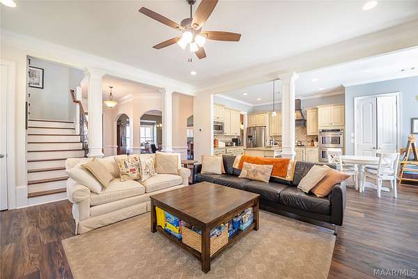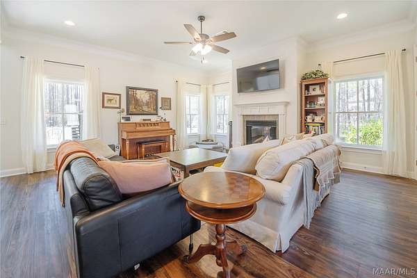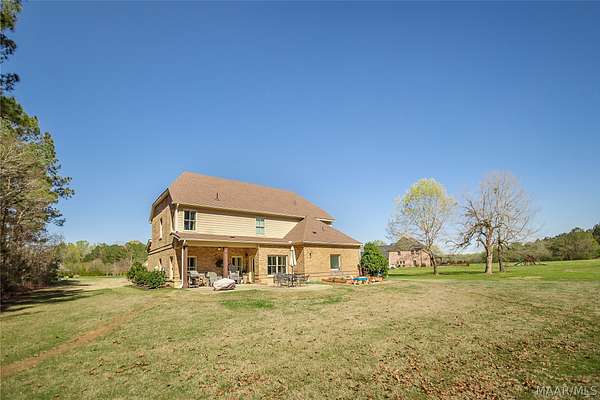 Welcome to this beautiful five-bedroom, three-and-a-half-bath home located on approximately three acres inside a desirable gated community in Pike Road, Alabama. Offering the perfect balance of privacy, space, and modern comfort, this property provides peaceful living while remaining convenient to Pike Road schools, shopping, dining, and the Montgomery area. Inside, the open-concept living area features a warm gas fireplace and flows seamlessly into the kitchen, creating an inviting space for both everyday living and entertaining. The kitchen is designed for functionality and style with a large work island, granite countertops, stainless steel appliances, and double ovens-perfect for preparing meals or hosting gatherings. The spacious dining room easily accommodates seating for twelve and features a beautiful Crawford ceiling along with exquisite molding that adds elegance and architectural character. The main-level master suite offers a relaxing retreat with a large step-in shower, dual vanities with granite countertops, and a generous walk-in closet. Additional bedrooms provide flexible space for family, guests, or a home office. Energy efficiency is maximized with spray foam insulation, a tankless water heater, and double-pane windows designed to help maintain comfortable indoor temperatures year-round. A new roof was installed in 2025, new french drain system installed in 2025 new HVAC approx 2023, and new flooring on the main level in 2024 adding even more value and peace of mind to this amazing home! Outside, the expansive three-acre homesite offers plenty of room to enjoy outdoor living, entertain guests, or simply relax and appreciate the peaceful surroundings.