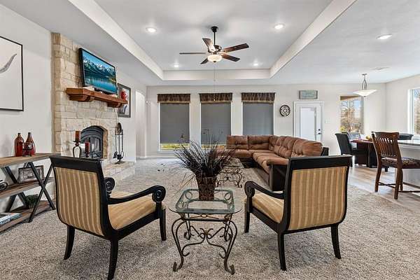 Dream Big Exclusive Rare Find +-4.69-Acre Opportunity in Union Valley, TX. Step into a world of opportunity with this superb + OR - 4.69 unrestricted ACRES to be subdivided out of 10.28 offers endless opportunities for building your dream; construction shop, store, or market in this vibrant, growing community. Located in Union Valley area on FM 35 @ Hwy 276. Perfectly poised with easy access to Quinlan, Royse City, Rockwall, Greenville, and I-30. This fast-growing area outside of DFW Metroplex is thriving with many new rural subdivisions and a variety of businesses! This is a PRIME location and opportunity to unleash the potential of your dreams and live and operate your business on the same property! The exquisite 2023 home features three bedrooms, two baths, and spans 1,776 sq ft. Revel in the elegant rock and stone architecture with modern board and batten accent completes this beautiful Tilson custom built home. It features open floorplan, living room with stone fireplace surround, gourmet kitchen with beautiful, modern black stainless appliances and propane gas range! As a bonus, it boasts a top of the line, best-in-market roof to withstand Texas' challenging weather. Don't want to live there, but need a store front or office? The home could easily be converted to either! There is 30,000 sq ft of good concrete slab ready for your new build. There is a healthy large (1 acre) spring fed, tranquil pond stocked with fish and surrounded by beautiful native plants for either your enjoyment or a continuous water source! So many opportunities for new or old businesses! Additional unrestricted acreage available: MLS#20886465-Commercial home or office, pond, workshop slab-4.69 acres, MLS#20985167- Commercial land-1.73 acres, MLS#20985174-Commercial land-2.580 acres.