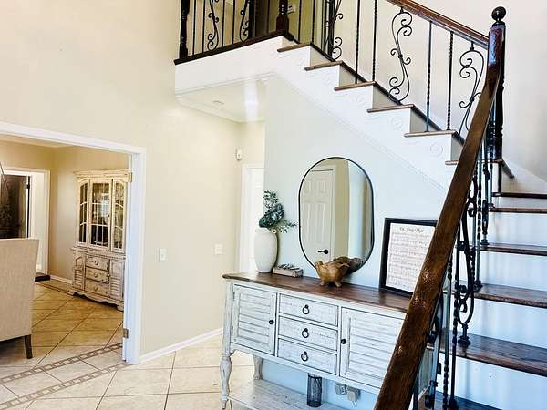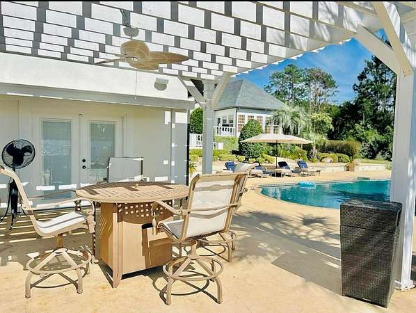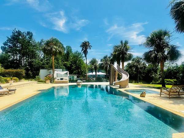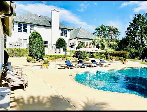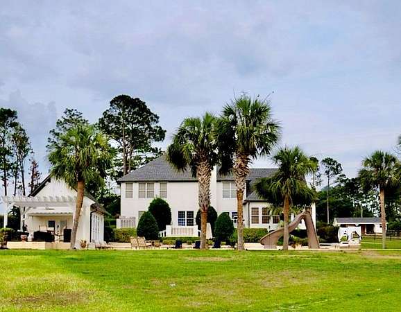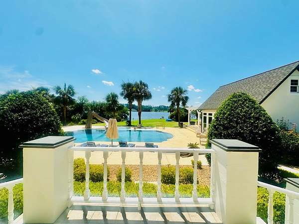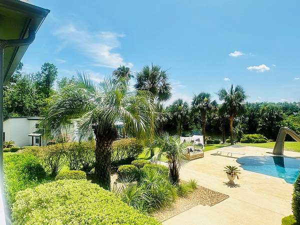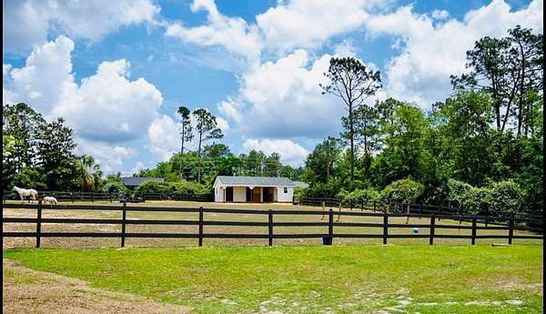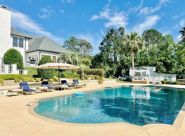 Stunning showpiece in Baymeadows Estates! This exceptional property spans 1.96 acres with breathtaking lake views and private beach with sparkling white Florida sand, perfect for relaxing or play. Complete with an insulated horse barn, three-panel wood fence, a resort-style pool house featuring a full kitchen and bath, and a fully equipped guest house, for extended family stays. Inside you're greeted by a grand foyer adorned with high ceilings and decorative tile work. To the left, a formal dining room awaits while straight ahead, the spacious family room offers breathtaking views. The gourmet kitchen showcases granite countertops, custom backsplash, eat-at bar, and a cozy breakfast nook. Just past the kitchen is a light-filled sunroom with lanai access, perfect for morning coffee. The primary suite is located on the main level, while upstairs, you'll find three additional bedrooms, two full baths, and spacious game room. Designed for both luxury and lifestyle, call today for a tour!