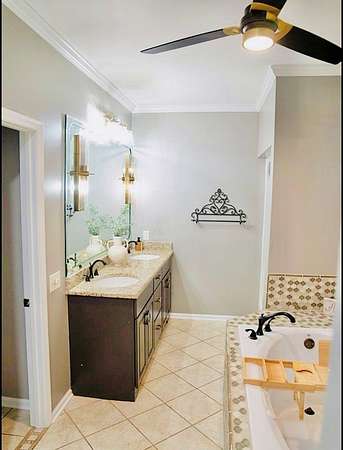 - Blinds, Cable TV, Ceiling Fan, Deck, Double Paned Windows, Fireplace-Gas, French Door, Pantry, Sprinkler System Yard, Walk-In Closet, Whirlpool Tub, Wood Floors