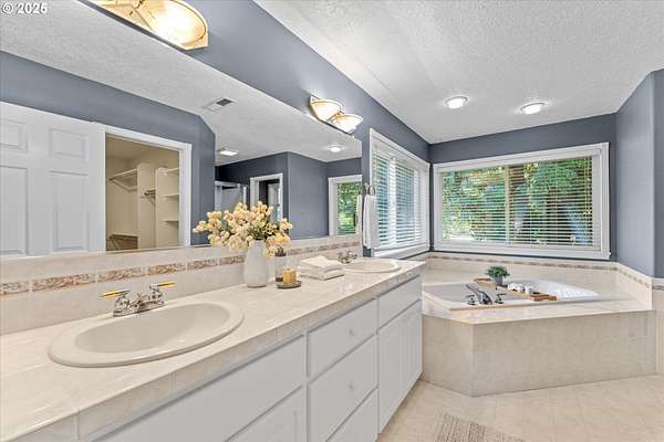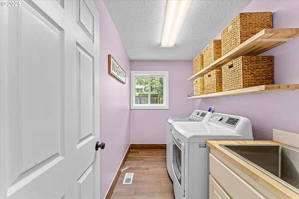 - Garage Door Opener, High Ceilings, Laundry, Luxury Vinyl Plank, Soaking Tub, Tile Floor, Vinyl Floor, Washer Dryer