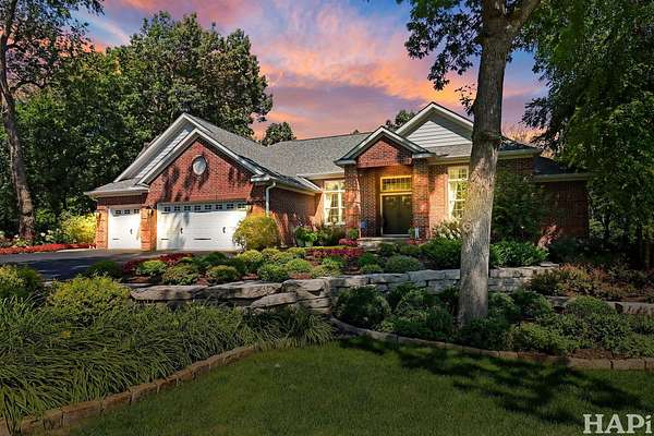 Welcome to Thousand Oaks Estates! This beautiful 3-bedroom, 3.1-bath walkout ranch offers 2,690 sq ft of comfortable, light-filled living space on a breathtaking 2-acre property. Step into the hardwood-floored foyer, perfectly framed by the formal dining room and a quiet study. The spacious master suite features vaulted ceilings, hardwood floors, deck access, a walk-in closet, and a private bath with separate double sinks, a sunken tub, and a walk-in shower. Two additional bedrooms, a full bath, and a half bath can also be found on the main level. The heart of the home is the bright kitchen with white cabinetry, granite countertops, a built-in cooktop, oven with microwave above and bright and sunny eat in area. Off the kitchen is a glorious 4 season sunroom flooded with natural light. Whether you're sipping morning coffee or unwinding in the evening, the sunroom offers panoramic views of the lush landscaped backyard, colorful flower gardens, and charming gazebo. The walkout lower level is designed for living and entertaining where the possibilities are endless: host game nights, set up a home theater, create a hobby space, or simply relax and enjoy. Also in the lower level is a full bath, exercise room, wet bar, office, storage/work rooms, and a second gas fireplace. Step outside to a patio and a park-like yard perfect for gatherings or quiet reflection. Additional highlights include a 3-car heated garage with epoxy floor and a spacious driveway. This is more than a home-it's your private retreat in Spring Grove.