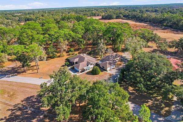 Did you say you needed space? This well-maintained home sits on a beautiful 3.39 acres, offering room to spread out and enjoy privacy, inside and out. A whole-house generator with an underground propane tank (used only by the generator) provides peace of mind, while the thoughtful layout makes everyday living comfortable and functional. There is also a whole house water filtration system. Step into the light and inviting living space featuring three bedrooms, two bathrooms, skylights, formal dining, and an open floor plan that flows seamlessly into a light and bright eat-in kitchen. The spacious primary suite is a true retreat with a huge walk-in closet and direct access to the lanai. The fully enclosed glass lanai is a standout feature. Enjoy it as a cozy sunroom during cooler weather, or open the windows to take in the sights and sounds of nature and the pond out back in warmer months. With access from the living room, primary suite, guest bedroom, and eat-in kitchen, this space truly expands your living area. The laundry room is conveniently located just off the attached two-car garage. Need room for toys or hobbies? You're covered with a detached two-car garage PLUS an RV garage, all connected by concrete driveways, park your RVs, boats, or use for extra storage. There is an additional half bath in the RV garage. Add all of this to the location.....near medical and hospitals, as well as the parkway.....and you've found everything you've been looking for.......and more.