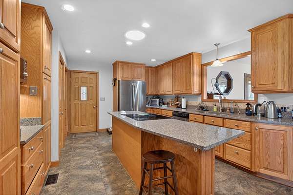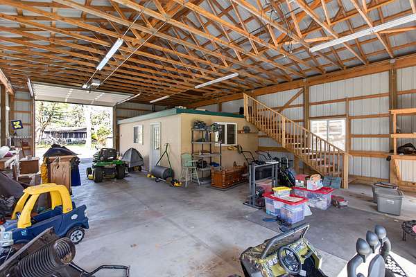 Escape to your own private retreat on 10 scenic acres--perfect for outdoor enthusiasts seeking space, serenity, and adventure. This secluded ranch-style home features 3 spacious bedrooms and 2 full bathrooms, offering comfortable living surrounded by nature. The property includes a dedicated garden area and chicken coop, ideal for those looking to embrace a more self-sufficient lifestyle. The kitchen is equipped with full appliance package and sleek quartz counter-tops, 2 wood-burning fireplaces create a warm, rustic atmosphere. One fireplace is located in living room, the other is in the rec room in the lower level. Recent updates include new gutters, an indoor wood furnace to supplement heat, and home is wired for a whole house generator. For hobbyists and adventurers alike, impressive 30x48 pole barn w/220-amp service is perfect for a workshop, gear storage, or recreational equipment. Also includes 100-amp service with RV plug.