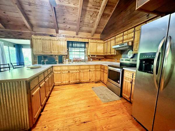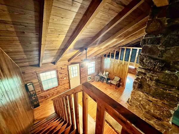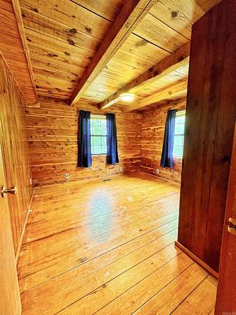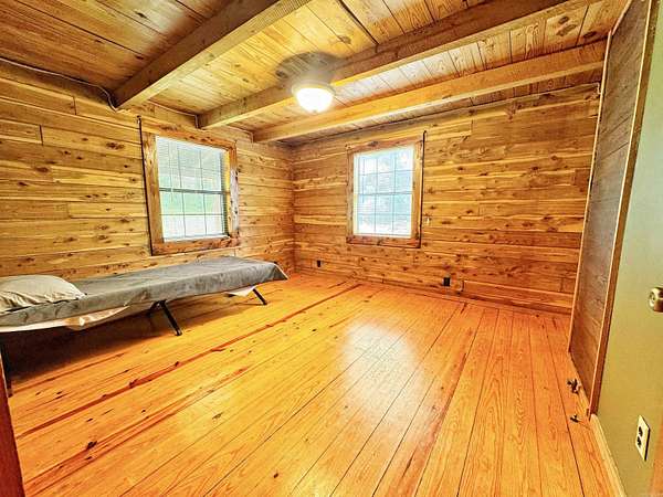 Are you searching for that adorable cabin that just demands some old wooden rocking chairs and a porch swing out front! Well here it is! Tucked back in the woods of the little community of Pleasant Grove, you'll find this quaint 4 bedroom, 2 bathroom cabin on 4.55 acres m/l. This country charmer has 3 bedrooms on the main level and an additional loft room accessible via stairs! On the other side of the home you'll find a pull down ladder to access the second loft space- think storage or hobby space! The sun room off the back is HUGE and offers a great view of your PRIVATE back yard! Many seem to be seeking a home with well water, and this one offers that too! The large yard offers plenty of space to set up the sweetest little homestead!