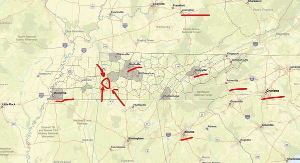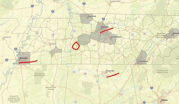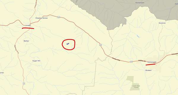 From TN-13/Squirrel Hollow Dr and Mill St in Linden, head S on TN-13. In 1.6 mi left on Bethel Rd Then 1.2 mi sharp left onto Old Hwy 13. After 1.0 mi, turn right onto Old Hohenwald. go 6.8 miles to Hillbrook Rd turn right to tract 0.5 mi on right.