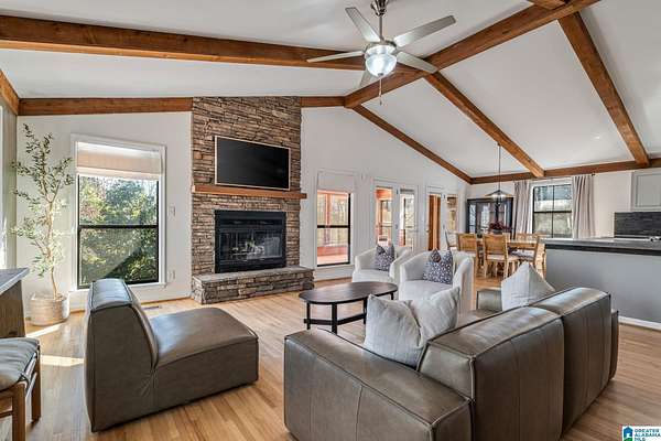 Welcome to Hitching Post Lane!! This fabulous, updated "Main Level Living" home sits on a beautiful 1.7 acre lot surrounded by trees & privacy. Open concept plan w/ vaulted ceilings, stone (wood burning) FP, refinished hardwoods, loaded w/ natural light stuns & perfect for family or entertaining. Kitchen wows w/ stainless appls, LG island w/ seating & prep space. A light filled sunroom w/ French Doors provides more living space surrounded by views of nature. BDs are located on opposite side w/ a dreamy owner's suite w/ DBL sink/vanity ensuite, 2 more BDs, DBL sink/vanity Full BA all w/ tile & hardwood laminate floors. Main level is complete w/ laundry room, wide front porch w/ swing to welcome guests & an expansive deck for grilling & dining. Fenced, flat yard w/ workshop/storage w/ electricity & room for pool. Large basement ready to finish as desired. 2Car Garage, extra parking space. Ramp access to home in back. All just minutes from new Publix shopping center, I-20 & I-459. NO HOA