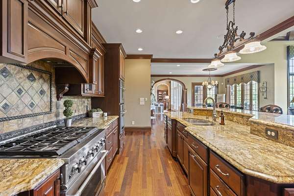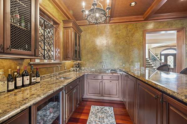 - Beamed Ceilings, Bookcases, Built-In Features, Butler's Pantry, Ceiling Fan(s), Central Vacuum, Chandelier, Coffered Ceiling(s), Crown Molding, Double Vanity, Entrance Foyer, Granite Counters, High Ceilings, High Speed Internet, Kitchen Island, Multi Panel Doors, Natural Woodwork, Open Floorplan, Pantry, Recess Ceiling(s), Recessed Lighting, Sauna, Soaking Tub, Sound System, Tray Ceiling(s), Walk-In Closet(s), Wet Bar