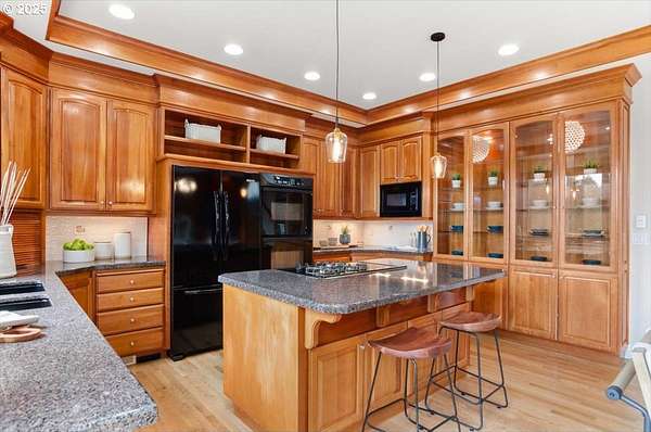 - Appliance Garage, Builtin Refrigerator, Cooktop, Dishwasher, Double Oven, Granite, Island, Microwave, Pantry