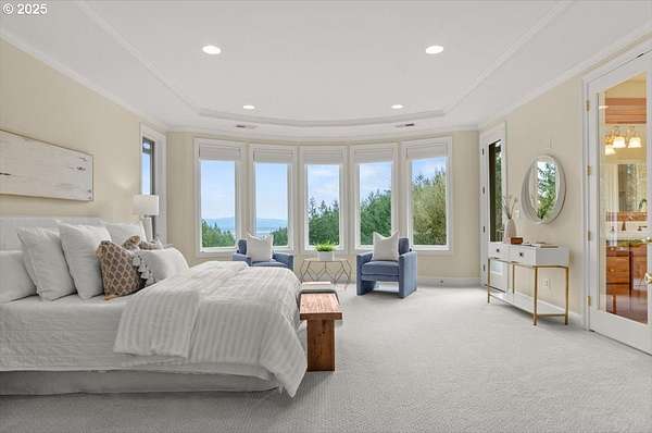The Lightning Ridge Estate is a rare and remarkable offering-nearly 10 gated acres of forested seclusion paired with striking architectural form. Spanning 8,913 square feet, the residence features soaring ceilings, custom craftsmanship, dramatic walls of glass, and a floor plan ideally suited for multi-generational living. A premier, award-winning fitness suite provides spa-level amenities with designated zones and hookups for a sauna, cold plunge, and gym. A private guest suite with full kitchen and a discreetly positioned three-car garage further elevate the property's thoughtful design. Expansive patios, curated gardens, and private trails create an immersive natural experience. All just minutes from Forest Park, top-rated schools, and the heart of NW Portland. ***Property taxes successfully appealed. [Home Energy Score = 2. HES Report
