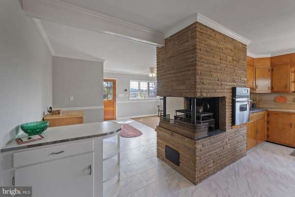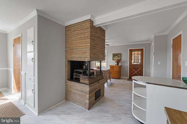 - Attic, Breakfast Area, Crown Moldings, Dining Area, Entry Level Bedroom, Tub Shower Bathroom, Wood Floors, Wood Stove