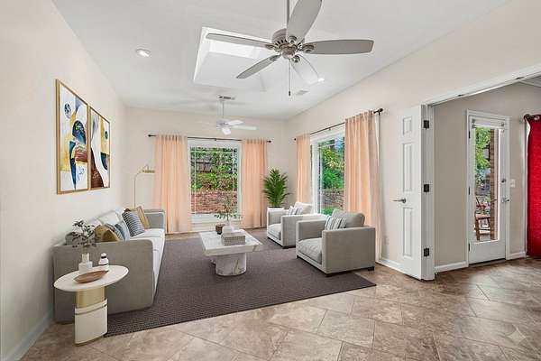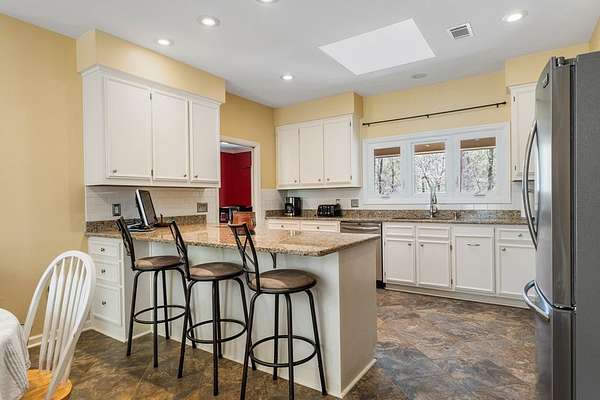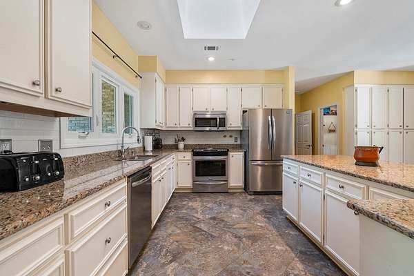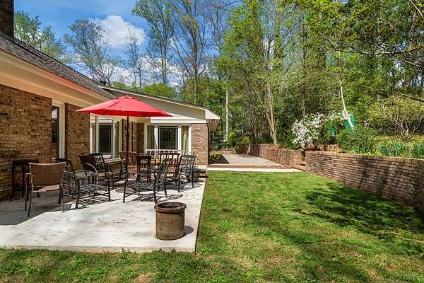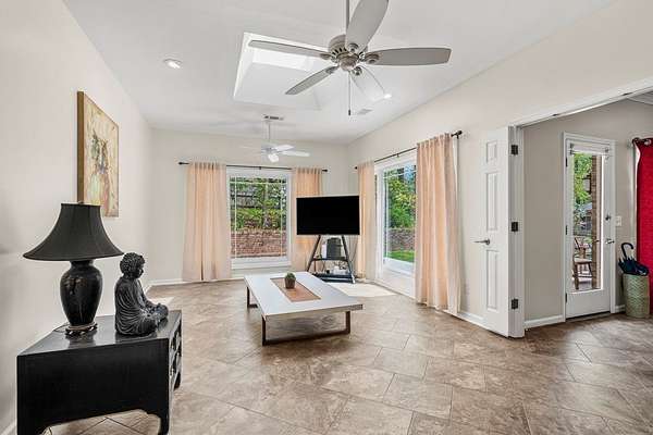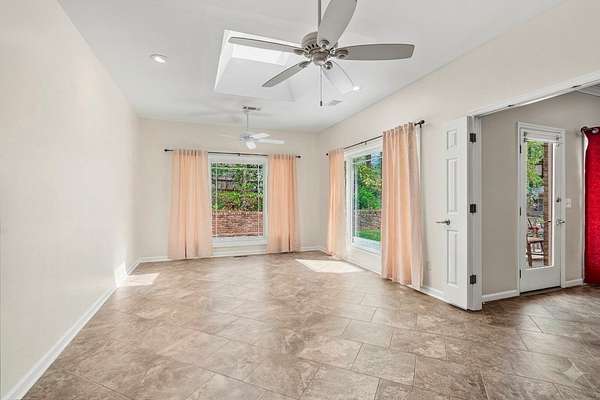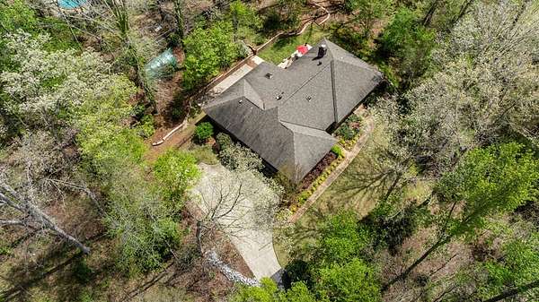 Welcome to your own private wooded oasis! This spacious 3-bedroom, 2-bath brick home sits on over 2 beautiful acres, offering the perfect blend of comfort, privacy, and natural surroundings. Tucked near a peaceful neighborhood lake, you'll enjoy quiet living with the beauty of nature right outside your door. Inside, the thoughtfully designed split floor plan provides both functionality and privacy. The primary suite is a true retreat, featuring separate vanities, a relaxing jetted tub, and a separate shower-perfect for unwinding at the end of the day. Skylights throughout the home fill the space with natural light, creating a bright and airy feel. The spacious kitchen offers granite countertops and the dining area offers a wet bar ideal for entertaining. The generous living spaces, including a cozy sunroom, flow seamlessly into your front-row seat to watch wildlife and enjoy the serene surroundings. Step outside and take in the peaceful acreage, where privacy and nature come together. An outdoor storage building with power and a window unit adds flexibility for a workshop, hobby space, or additional storage. With abundant storage, spacious living areas, and a setting that feels like a retreat, this home offers the perfect balance of comfort and escape while still minutes away from commerce.