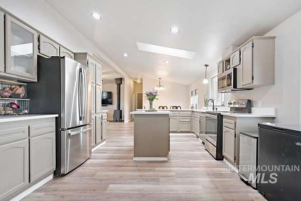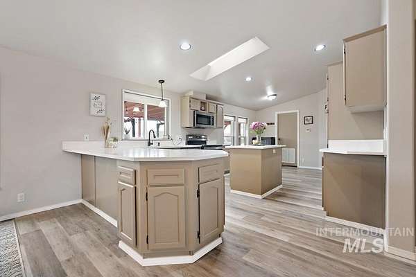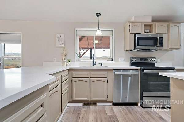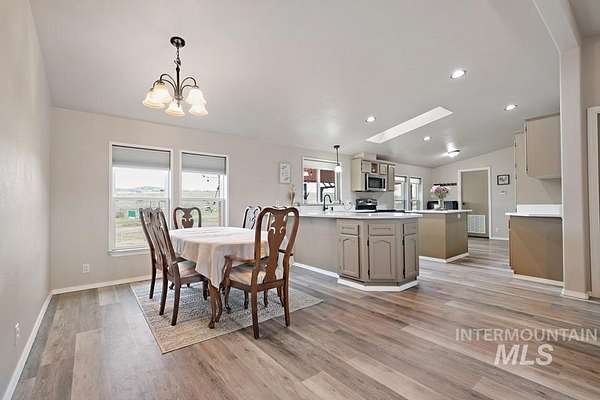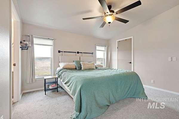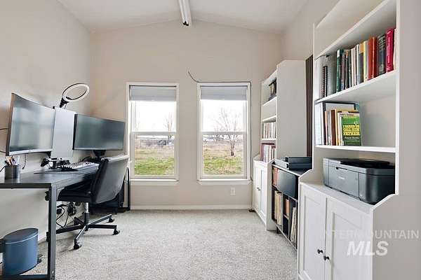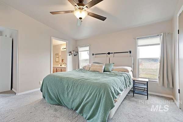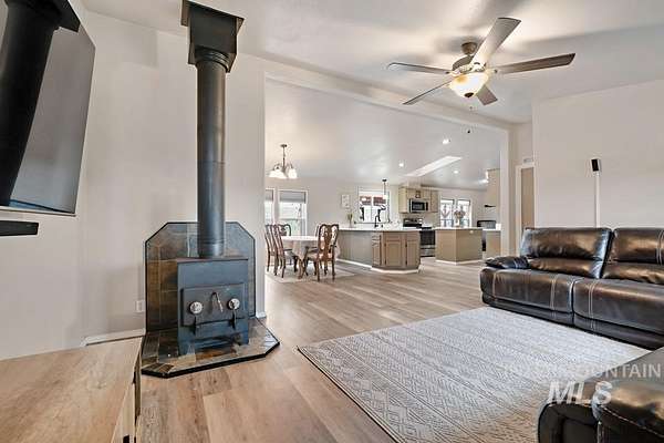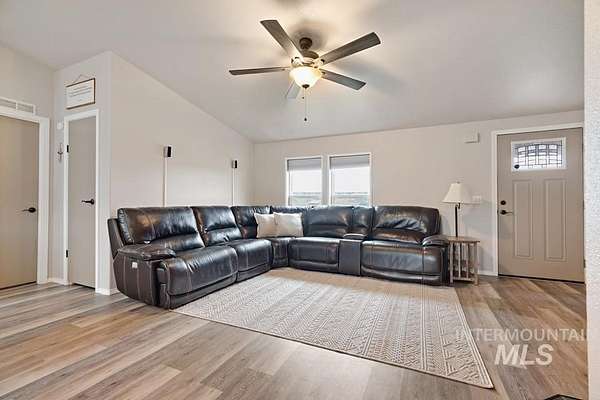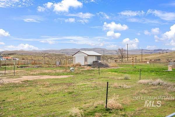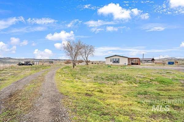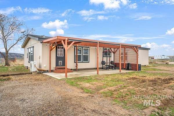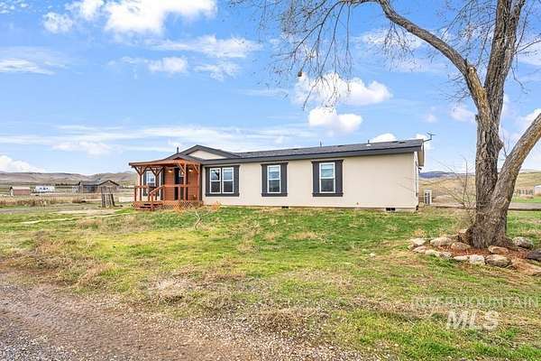 A dream in the making, this rare opportunity offers peaceful country living with a truly stunning backdrop. This well-kept 3-bedroom, 2-bath, 1,512 sq ft manufactured home has been thoughtfully maintained and updated, including a new roof, windows, HVAC, flooring and appliances in 2023. Clean, inviting, and move-in ready, the home features a modern open layout with a split-bedroom design that provides privacy for the primary suite, along with a dedicated office space ideal for working from home. Start your mornings on the front porch watching Idaho's famous sunrises rise over the butte. The wrap-around driveway allows easy access for RVs, trailers, and equipment, with plenty of room to park and maneuver. Set back from the road, the 3.39-acre property offers exceptional privacy and freedom, complete with cross-fencing for livestock, ready for any hobby farm with full perimeter fencing, a private well, no HOA, and a driveway alarm to alert you when visitors arrive. The property includes a conditional use permit for a second dwelling, with a planned homesite and approvals already in place. Just minutes from BLM, Snake River access, Hot Springs and local schools, this location offers the best of both worlds-privacy, space, and quick access to town. Enjoy year-round outdoor adventures and peaceful country living, all while being under an hour from Boise Airport.