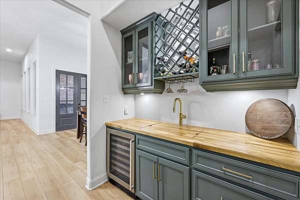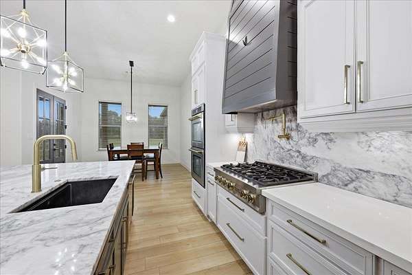 - Bookcase, Ceiling Fan(s), Garbage Disposal, Gas Stove, Inside Utility Room, Island Work Center, Open Concept, Pantry, Primary Bedroom Down, Quartz, Split Bedroom Plan, Wet Bar