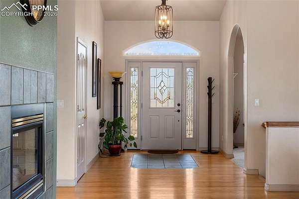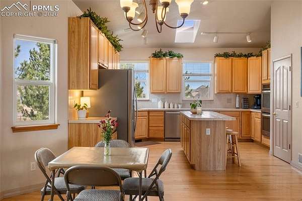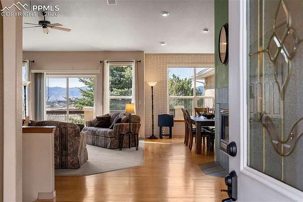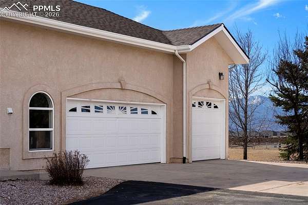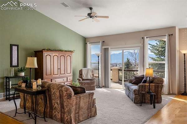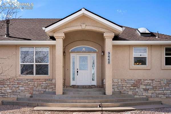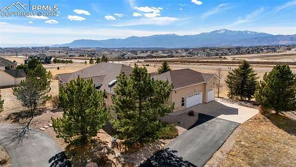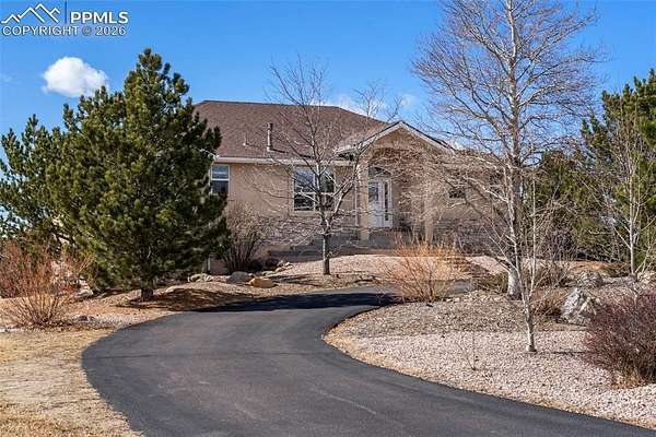 Awaken every morning to a stunning view of Pikes Peak and the front range. This 4400 sqft raised ranch offers the wonderful balance of one level living along with large lower level walk out to include rec room with bar and two additional bedrooms. As you enter this home enjoy vaulted ceilings throughout the entire main level. The great room and dining open to a spacious deck overlooking the 2.5 acre property. Back inside the main level includes an open kitchen with double ovens, gas stove, center island and eat-in area. The spacious primary bedroom opens to the back deck and includes fireplace and walk-in closet. The main level guest suite may also function as a in-home office. Don't miss this opportunity to own a piece of open country living while just minutes away from ample shopping and recreation amenities.