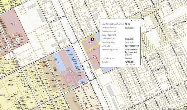 Zoned PD-G (Planned Development - General) which would allow retail, service, gas station, convenience store, restaurant, medical, shopping center, etc. See attached Ordinance 16-294 for details.