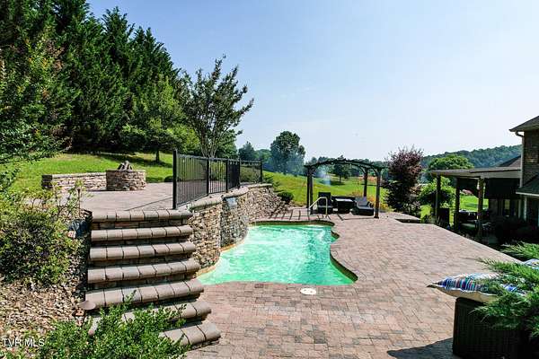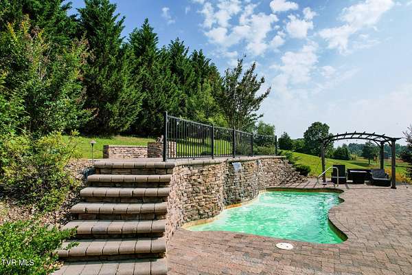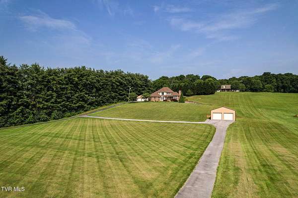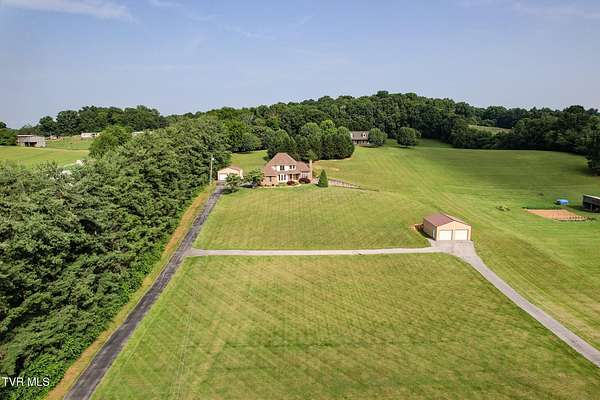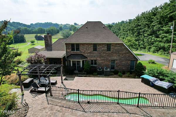 Welcome to 945 Dashaway Road - Chuckey, Tennessee Set on 2.88 beautifully maintained acres, this stunning 3-bedroom, 2.5-bath home offers over 4000 square feet, a 3 level saltwater pool with heated waterfalls and gas log firepit, multiple garage spaces totaling 5 bays, including a 420 sq ft attached garage and two detached garages - perfect for hobbyists, car enthusiasts, or additional storage. Custom built by Todd Brown. Paved Driveway with paved access from main drive to the 2nd garage. Also makes a great place to walk for exercise. This 1.5-story residence impresses from the moment you enter the spacious 2 story foyer, featuring hardwood flooring and tile throughout, fresh interior paint, and timeless architectural details. The living room boasts vaulted ceilings, intricate crown molding, two trimmed walkways, and a breathtaking fireplace with detailed scrollwork and gas logs. The spacious kitchen is equipped with solid hardwood cabinetry, stainless steel KitchenAid appliances including stove, hood, and dishwasher, and a cozy bay window breakfast nook. Also in the kitchen is a built-in desk area, and a Mountain View Pure Water system, including a whole-home water softener and filtered drinking spigot. Off the kitchen if the covered back porch with tongue in groove ceiling, fan and TV! There are 3 outlets for propane if you want to add your grill or smoker. The formal dining room features a bay window, ceramic tile floors, and easy access to the foyer, where a beautiful staircase leads to the upper level. The main-level primary suite is a true retreat with a cabinet-style gas log fireplace, hardwood floors, large windows, and a luxurious en-suite bath complete with double vanity, pantry tower, oversized whirlpool tub, walk-in shower, ceramic accents, and a spacious walk-in closet. Upstairs, an open loft/living area offers flexible space for a second living room, playroom, or media area. Two generously sized bedrooms - one with double closets, the other with a walk-in closet - share a large full bath with double vanities and additional storage cabinetry. The partially finished lower level adds even more living space, featuring new luxury vinyl plank flooring, ceiling fan, propane heater, entertainment alcove, and plenty of storage including under-stair space. The ceiling is sheet rocked, and the walls have been dry locked with a neutral tinting. I counted half of the basement square footage as finished in the numbers. Buyer to verify. This level also houses the heat pump, water heater, and filtration systems. Outdoors is truly a showstopper. Enjoy the custom Brooks and Malone Salt system three-level pool, complete with heated waterfalls, gas log fire pit, and lush professional landscaping with lighting perfect oasis for relaxation or entertaining. Additional acreage and a large metal barn with a striking copper-colored roof are also available for purchase - contact the listing agent for details. Recent Updates Include: '' Roof '' Heat pumps '' Pool heater (All within the past 5 years) Bonus: Seller is offering a home warranty for added peace of mind. Seller will provide copy of recent home inspection with actions taken. Seller will provide current termite letter with offer. Buyer is welcome to conduct any inspections.Bonus: Seller is offering a home warranty for added peace of mind. Seller will provide copy of recent home inspection with actions taken. Seller will provide current termite letter with offer. Buyer is welcome to conduct any inspections.All information taken from a third-party source (courthouse/tax records) and to be verified by the buyer/buyer's agent. Drawn in lines are approximate. Some elements (fires in fireplaces, twilight shading, lighting, etc.) have been added/modified digitally. Rooms noted have been virtually staged for decorating ideas only, not to scale or representative of any product. CubiCasa app is used for floor plans, dimensions are not guaranteed.
