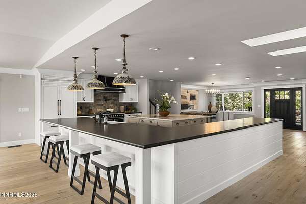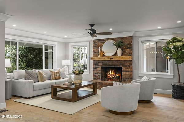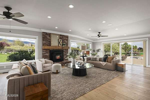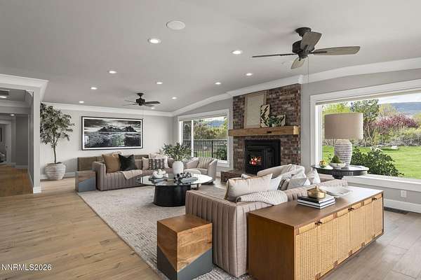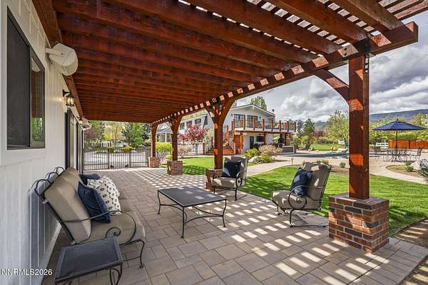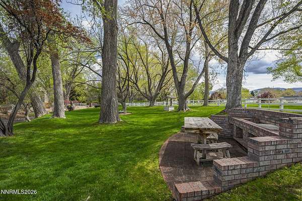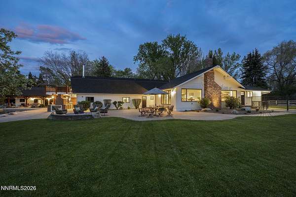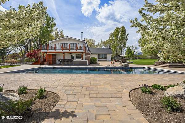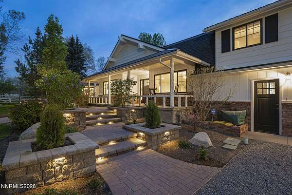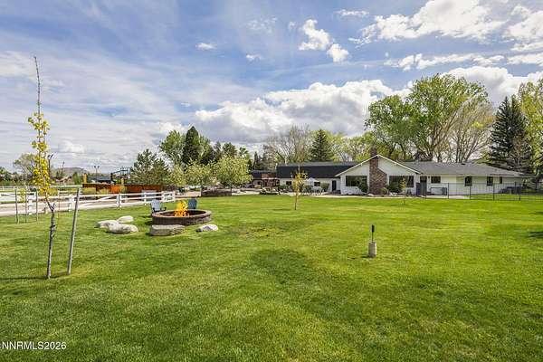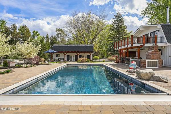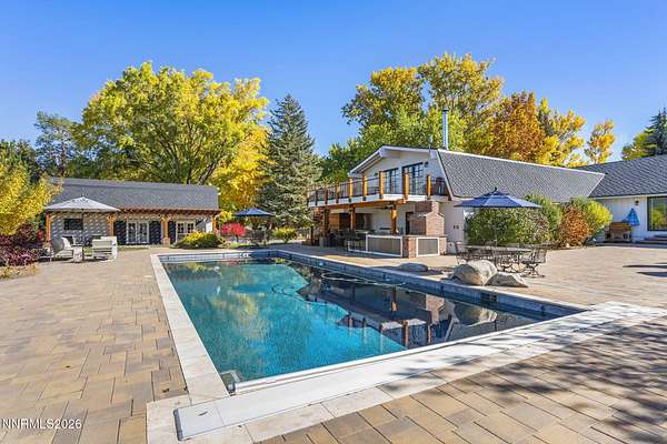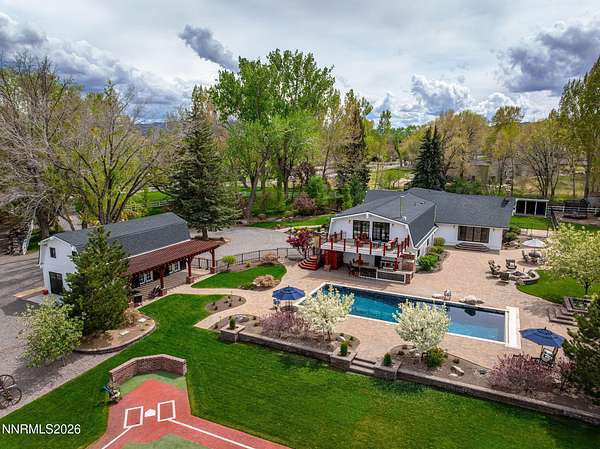Welcome to your forever home in the heart of Holcomb Ranch, one of Reno's most beloved neighborhoods. This lush, five-acre property is more than just a home-it's a private park, a retreat, and a playground for all ages. Mature trees shade expansive lawns, a peaceful pond invites quiet reflection, and Thomas Creek winds gently through the grounds, offering a soothing soundtrack to your daily life. The fully renovated, split-level home spans 5,000 square feet and embraces modern farmhouse style with warmth and elegance. At its heart is a chef's kitchen designed for connection and creativity, featuring leathered countertops, abundant cabinetry, a professional-grade stove with pot filler, and a generous center island perfect for baking projects, homework sessions, and holiday feasts. The south wing of the home is thoughtfully arranged for family living, with a spacious primary suite that opens to a private patio overlooking the creek-ideal for morning coffee or evening stargazing. Nearby, two bedrooms share a Jack-and-Jill bath, while a third bedroom and a dedicated office offer flexibility for growing families or remote work. On the north side, you'll find a three-car garage, a cozy library for quiet reading time, a sauna for unwinding, and a sprawling 1,000-square-foot game room ready for movie nights, ping pong tournaments, or birthday parties. A whole-home sound system extends outdoors, setting the mood for every moment. Step outside and discover a backyard built for unforgettable memories. Splash in the large pool, soak in the hot tub, and fire up the pizza oven in the outdoor kitchen. Roast marshmallows around the fire pit, shoot hoops on the basketball half court, or play under the lights on your very own wiffle ball field. There's even an in-ground BBQ pit-perfect for hosting epic family gatherings. A detached, fully renovated recreation room adds even more space for hobbies, guests, or storage. And for your four-legged family members, the property includes a spacious dog run, a well-equipped horse barn with three rotating pastures, and a charming chicken coop. Whether you're catching fish in your own pond, telling stories by the fire, or drifting to sleep to the sound of the creek, this home offers a rare opportunity to live, play, and grow in a setting that feels like a private resort. It's a place where childhoods are made magical, traditions are born, and every season brings new adventures.