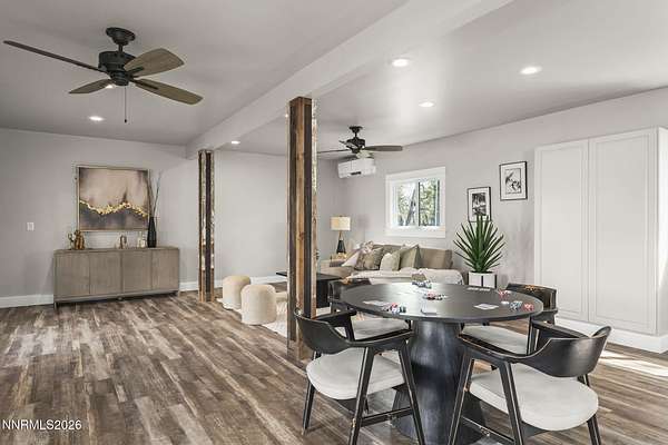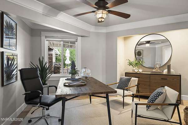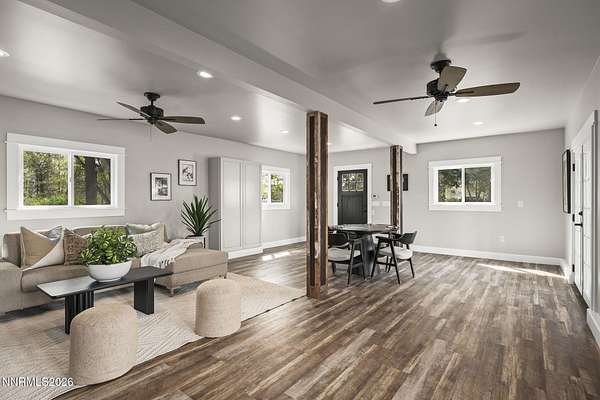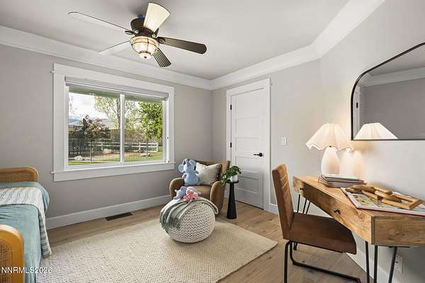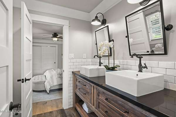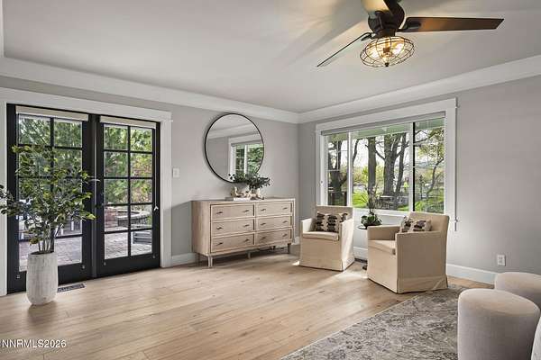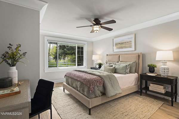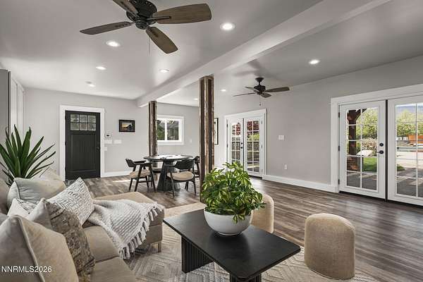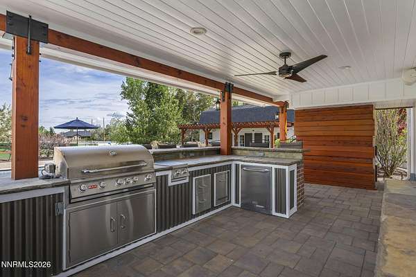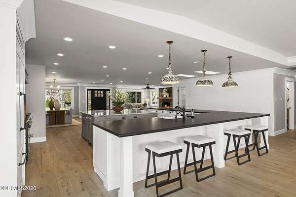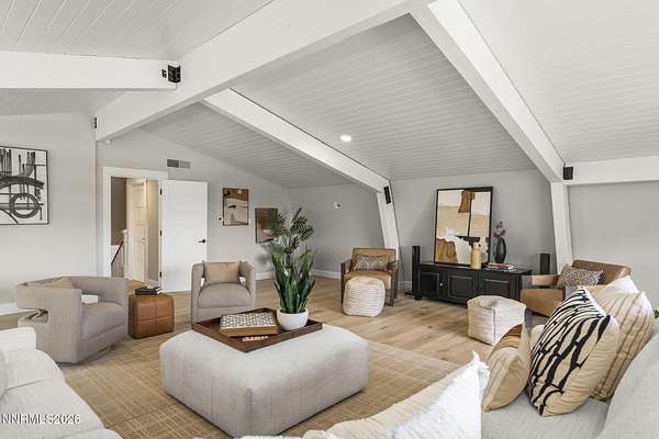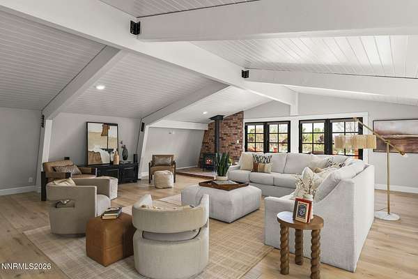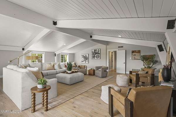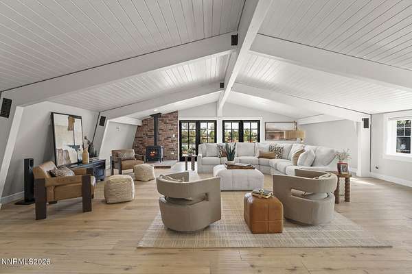 Welcome to your forever home in the heart of Holcomb Ranch, one of Reno's most beloved neighborhoods. This lush, five-acre property is more than just a home-it's a private park, a retreat, and a playground for all ages. Mature trees shade expansive lawns, a peaceful pond invites quiet reflection, and Thomas Creek winds gently through the grounds, offering a soothing soundtrack to your daily life. The fully renovated, split-level home spans 5,000 square feet and embraces modern farmhouse style with warmth and elegance. At its heart is a chef's kitchen designed for connection and creativity, featuring leathered countertops, abundant cabinetry, a professional-grade stove with pot filler, and a generous center island perfect for baking projects, homework sessions, and holiday feasts. The south wing of the home is thoughtfully arranged for family living, with a spacious primary suite that opens to a private patio overlooking the creek-ideal for morning coffee or evening stargazing. Nearby, two bedrooms share a Jack-and-Jill bath, while a third bedroom and a dedicated office offer flexibility for growing families or remote work. On the north side, you'll find a three-car garage, a cozy library for quiet reading time, a sauna for unwinding, and a sprawling 1,000-square-foot game room ready for movie nights, ping pong tournaments, or birthday parties. A whole-home sound system extends outdoors, setting the mood for every moment. Step outside and discover a backyard built for unforgettable memories. Splash in the large pool, soak in the hot tub, and fire up the pizza oven in the outdoor kitchen. Roast marshmallows around the fire pit, shoot hoops on the basketball half court, or play under the lights on your very own wiffle ball field. There's even an in-ground BBQ pit-perfect for hosting epic family gatherings. A detached, fully renovated recreation room adds even more space for hobbies, guests, or storage. And for your four-legged family members, the property includes a spacious dog run, a well-equipped horse barn with three rotating pastures, and a charming chicken coop. Whether you're catching fish in your own pond, telling stories by the fire, or drifting to sleep to the sound of the creek, this home offers a rare opportunity to live, play, and grow in a setting that feels like a private resort. It's a place where childhoods are made magical, traditions are born, and every season brings new adventures.