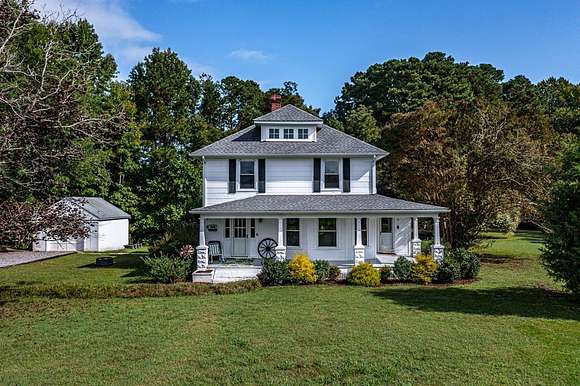 This charming, well maintained Victorian farmhouse is situated on a little over two private acres. Inside, one is greeted by a fabulous foyer with a lovely stairway leading to the three second level bedrooms. Beautiful hardwood floors throughout lead to an inviting parlor and dining room. The kitchen is classically adorned. Rest in the peaceful shade of the spacious covered porch spanning the front of the house and one side. There is also a detached, one car garage and a shed which has been utilized as a greenhouse. An outside entry basement contains new and fully updated electrical and HVAC systems, both of which exceed code requirements. Brand new washer/dryer, refrigerator and stove convey with the property. A fresh coat of paint has brightened the entire interior of the house. The roof was replaced recently. The property could be a full or part time residence, or it could be a great investment property as Chesapeake Cove Marina is two minutes down the road and the center of Kilmarnock is less than a minute away. This house is move in ready.