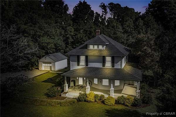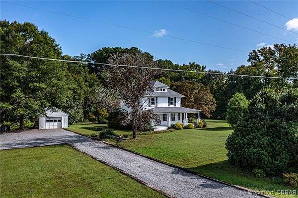 This charming and well maintained Victorian farmhouse is situated on a little over two private acres. Inside, one is greeted by a fabulous foyer with a lovely stairway leading to the three second level bedrooms. Beautiful hardwood floors throughout lead to an inviting parlor and dining room. The kitchen is classically adorned. Rest in the peaceful shade of the spacious covered porch spanning the front of the house and one side. There is also a detached, one car garage and a shed which has been utilized as a greenhouse. An outside entry basement contains new and fully updated electrical and HVAC systems, both of which exceed code requirements. Brand new washer/dryer, refrigerator and stove convey with the property. A fresh coat of paint has brightened the entire interior of the house. The roof was replaced recently. The property could be a full or part time residence, or it could be a great investment property as Chesapeake Cove Marina is two minutes down the road and the center of Kilmarnock is less than a minute away. This house is move in ready.