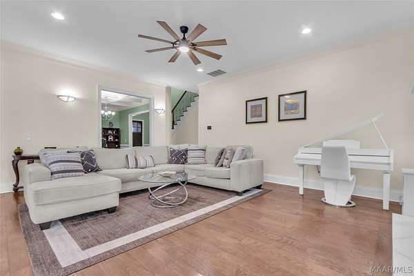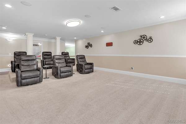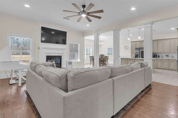 Welcome to 9450 Manor Way, an extraordinary estate tucked inside the prestigious gated community of Beau Paysage, located in the heart of Pike Road. Set on 3.1 impeccably manicured acres, this private retreat seamlessly combines classic elegance with modern comfort. Upon entry, a grand foyer with soaring 24-foot ceilings creates an unforgettable first impression, introducing more than 5,000 square feet of thoughtfully designed living space. The home features six bedrooms, three full bathrooms, two half baths, a spacious laundry room, and a private elevator providing access to all levels. Designed for both everyday living and elegant entertaining, the main level showcases a formal dining room with a striking coffered ceiling, flowing into a dramatic living area centered around a warm, inviting fireplace. The chef's kitchen serves as the heart of the home, boasting Professional Series double ovens, five-burner gas cooktop, SMART refrigerator, dishwasher, abundant custom cabinetry, and an oversized island finished with exotic granite. The first-floor primary suite is a true sanctuary, offering a spa-inspired ensuite bath with jetted soaking tub, separate shower, dual vanities, and an expansive walk-in closet. Upstairs, five generously sized bedrooms provide flexibility, including rooms currently used as a game room and fully equipped home gym. Additional highlights include 2.5 baths with a convenient Jack-and-Jill layout and an oversized media room with surround sound, perfect for movie nights and entertaining. Outside, the property impresses with covered front and rear porches, lush landscaped grounds with underground sprinklers, and ample parking via a three-car attached garage and double horseshoe driveway. Offering a blend of luxury, privacy, and refined suburban living, this estate delivers peaceful country charm just minutes from Pike Road's premier shopping and dining. Schedule your private tour today and experience the unparalleled lifestyle this home offers.