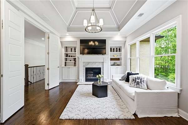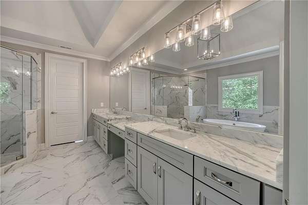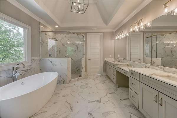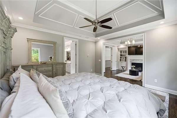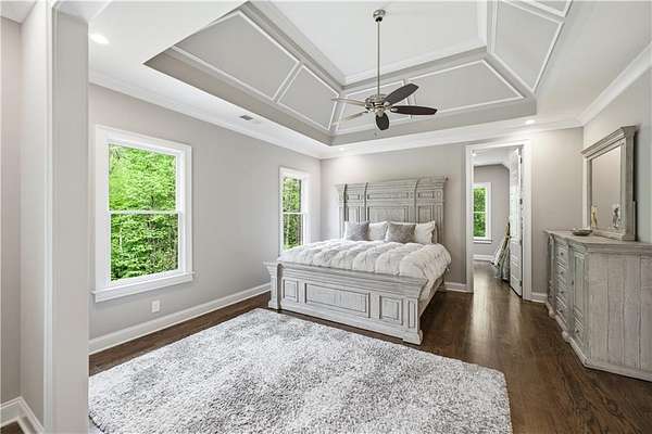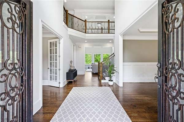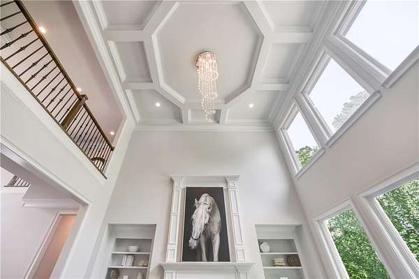 - Bookcases, Coffered Ceiling(s), Crown Molding, Double Vanity, Entrance Foyer 2 Story, High Ceilings 10 ft Lower, High Ceilings 10 ft Main, High Ceilings 10 ft Upper, His and Hers Closets, Walk-In Closet(s)