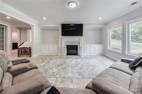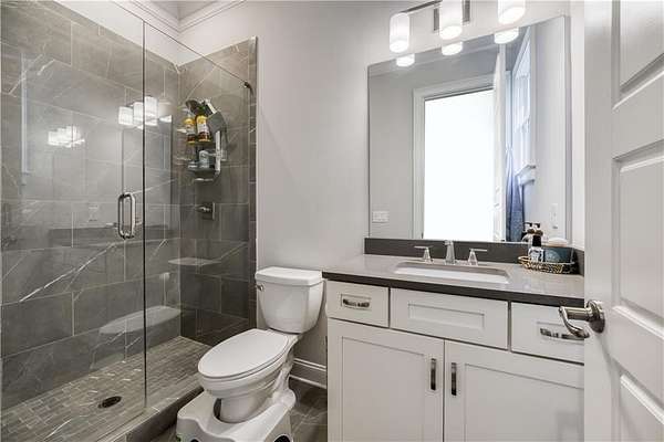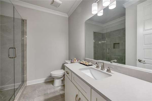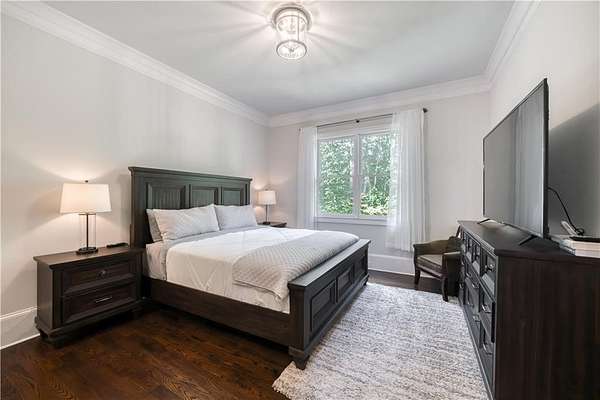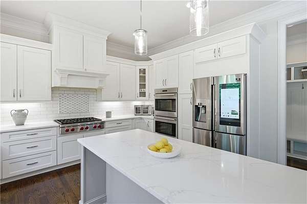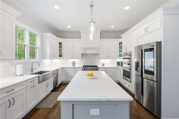 Recently Constructed, this 4-Side Brick Executive Home, the last home built in Prestigious Prestwick (7 years old), walking distance to Atlanta Athletic Club and Perimeter Christian School. Sitting beautifully on the 1.99 Acres, it has the 2nd Largest Lot in Prestwick. Lush landscaping and hardwood trees give total privacy to this perfectly flat cul-de-sac lot with tons of space for a pool, hot tub, tennis/pickleball court, fire pit, playground, or other endless possibilities for Outdoor Entertainment. Beautifully crafted QUALITY Construction with Spacious Guest Suite and Full Bath plus 1/2 Bath on Main Floor, up to date finishes and top of the line appliances, including Stainless Farm Sink, Custom Imported Metal Double Front Doors, Premium Quality Wolf Gas Stove, Wolf Double Oven, Custom White Cabinets throughout with Soft Close Hinges, Iron-Spindle staircases, Oak Hardwood Floors on main and 2nd floor, Large Owner's Suite with Hardwood Floors, Sitting Room with Fireplace and Spacious His/Hers Walk-In Closets. White Marble Bath with large waterfall Shower and Soaking Tub, 3 additional spacious secondary bedrooms up, each with own private bath. Finished Full terrace Level with lots of natural light, marble surround gas log fireplace, and low maintenance "Wood-Look" Tile Floors. Space Stubbed for wet bar or Kitchenette. Space was designed with Beauty, Quality and Functionality as top priorities. Close proximity to Johns Creek High School,Wesleyan Schools, and The Forum. Understated Elegance in Johns Creek!