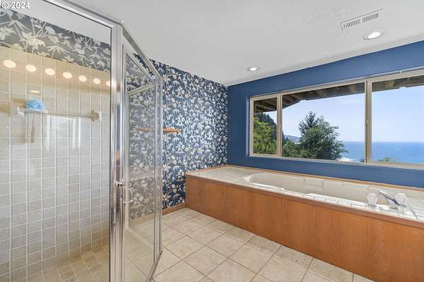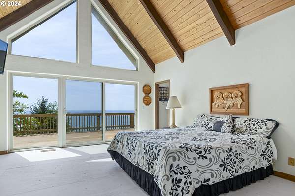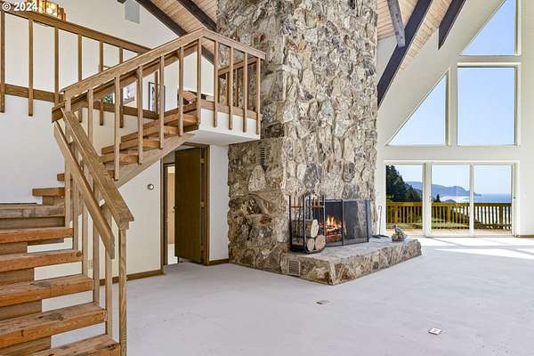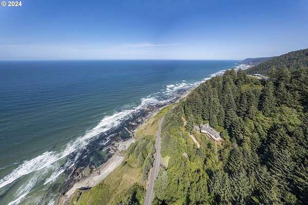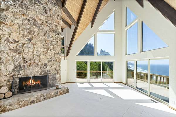 Take another look at these breathtaking views of paradise on the stunning Oregon Coast. Perched high on a bluff, the home offers panoramic vistas of crashing waves and dramatic sunsets. Enjoy the spacious open-concept living area with floor-to-ceiling windows. It's a blank canvas for you to custom design your dreams. Truly, it's waiting for your ideas and the price reflects it. There are ocean views from the kitchen and dining room. The primary suite has a private ocean-view balcony and there are multiple decks for outdoor entertaining. There is also a great office area off the primary bedroom. The property covers 4.12 acres of a woody hillside with it's own artesian spring water. Located near Yachats' for shops, restaurants, and attractions, it's also very private and makes for a luxurious coastal retreat. This property is in Lane County although it has a Lincoln County address. Experience the beauty of the Oregon Coast year-round in this exceptional oceanview property.